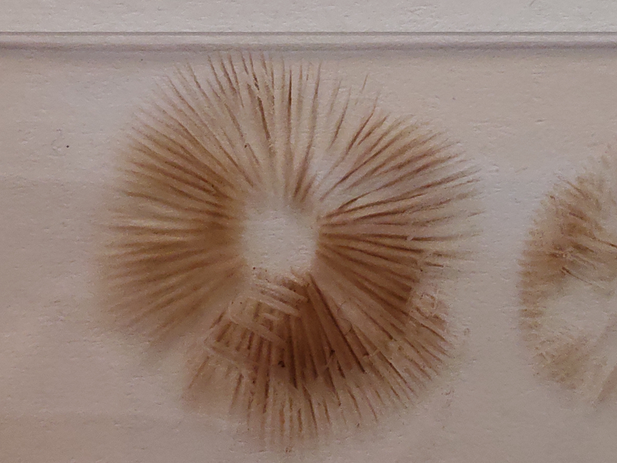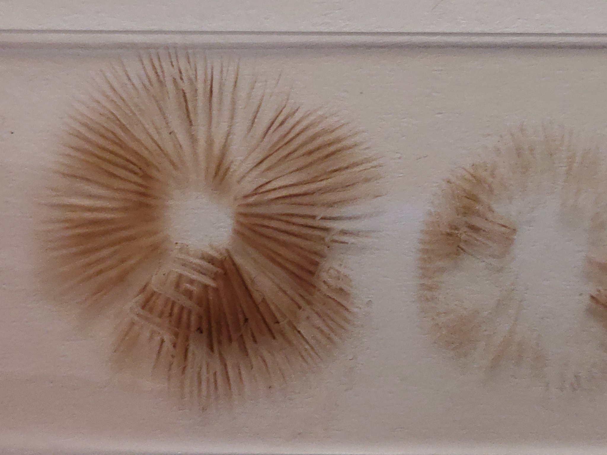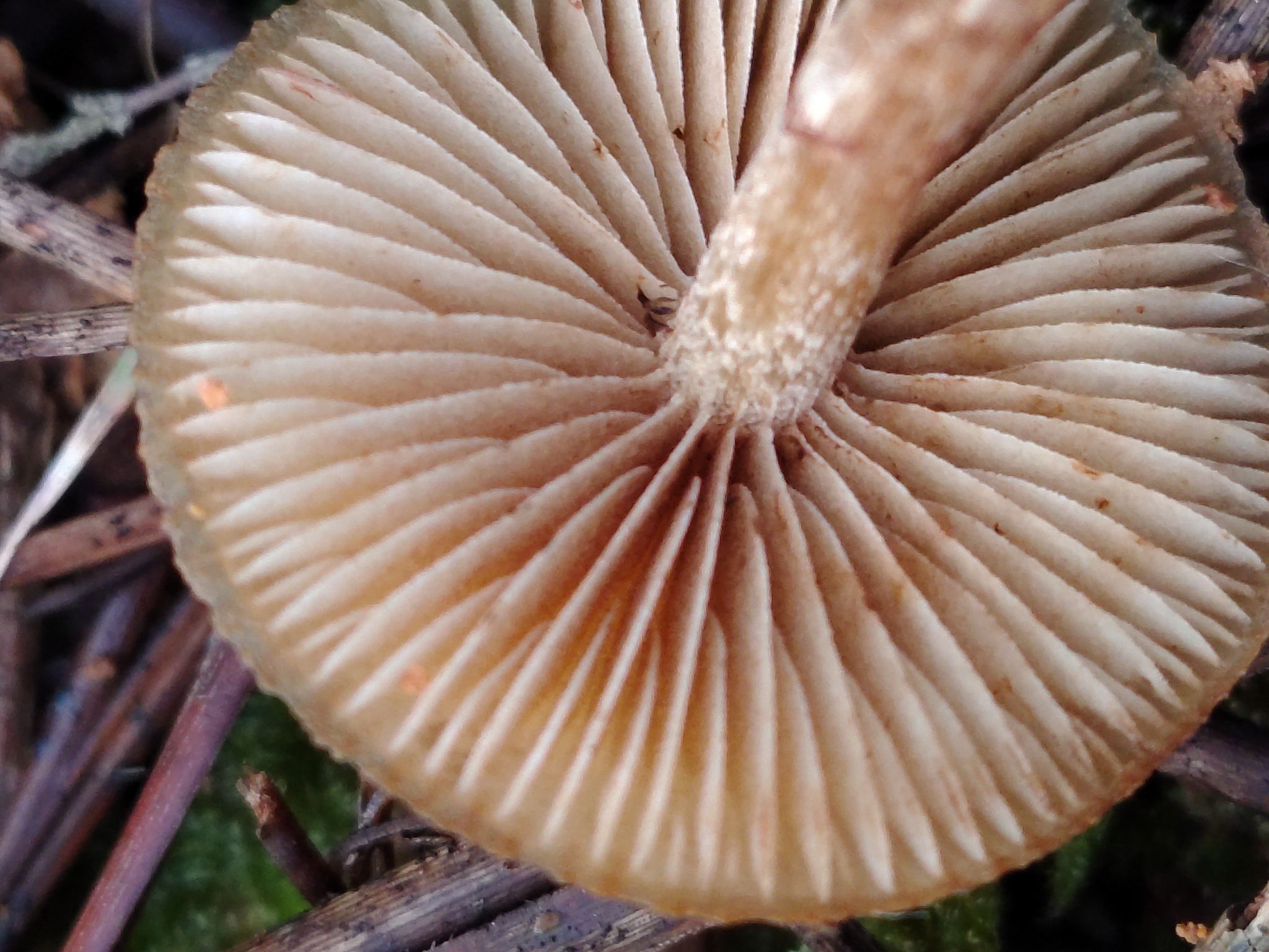 Lamellen: jung weisslich, später blass rostbraun, dicht, gerade angewachsen bis leicht herablaufend
