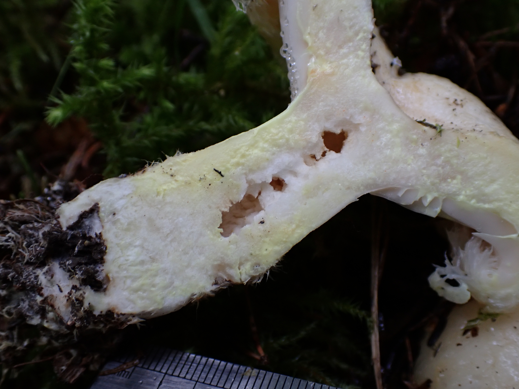 Fleisch: weiss, im Schnitt gilbend, Milch weisslich und sofort gelb verfärbend. Nach einigen Minuten wird die Milch wieder weisslich.