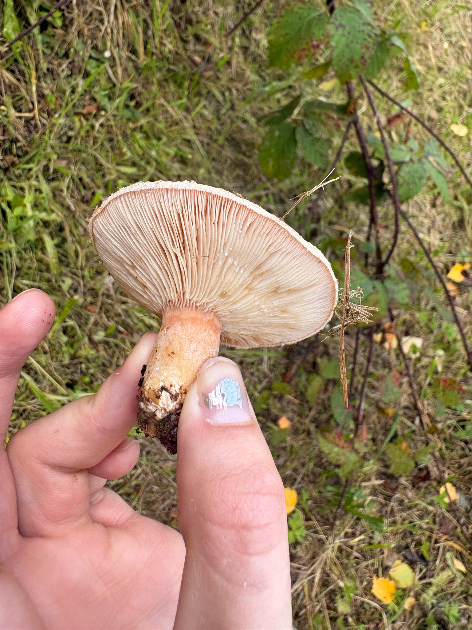 Stiel: zylindrisch bis angsepitzt, weiss mit etwas Rosa, Braun, evtl. leicht grubig.