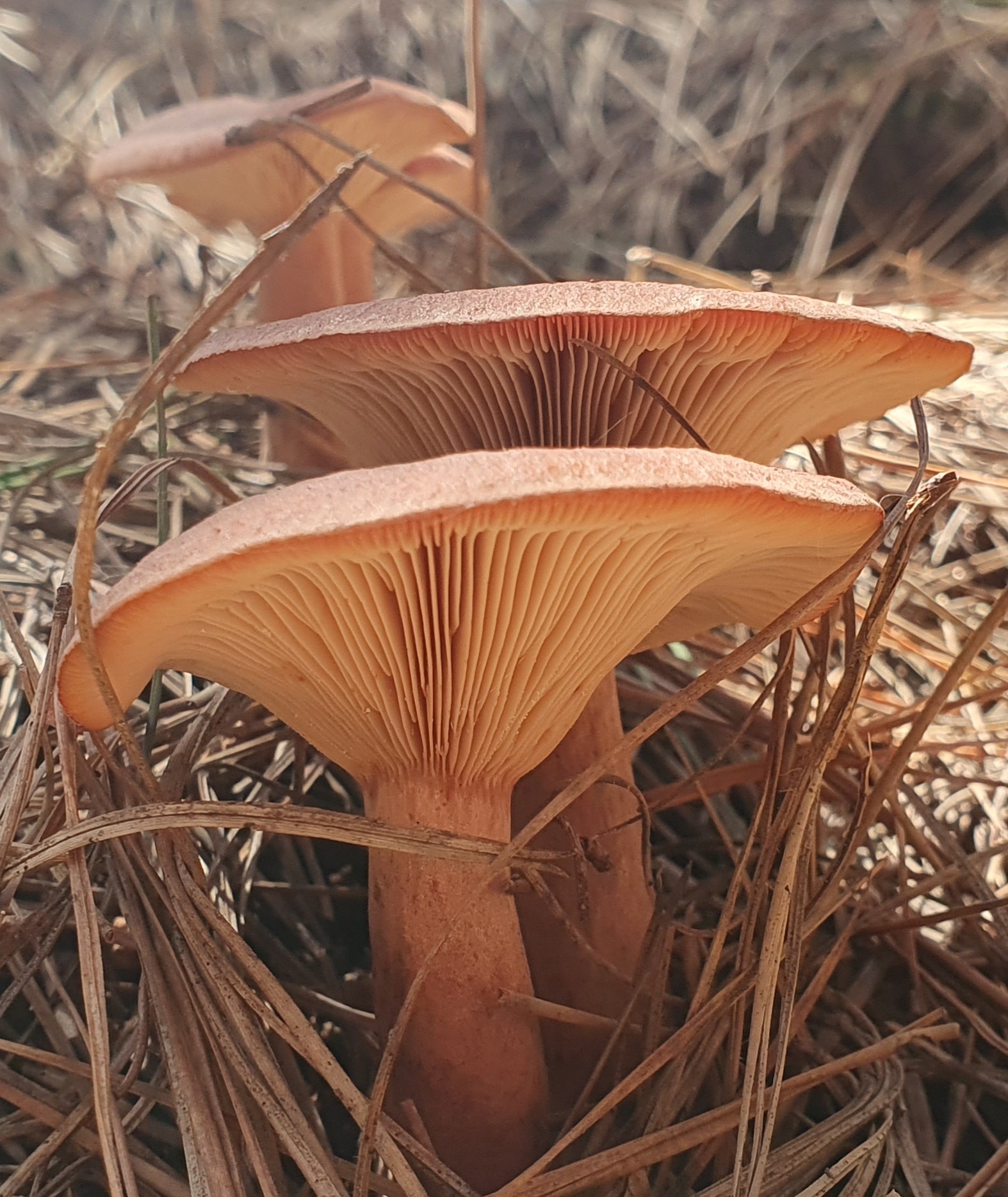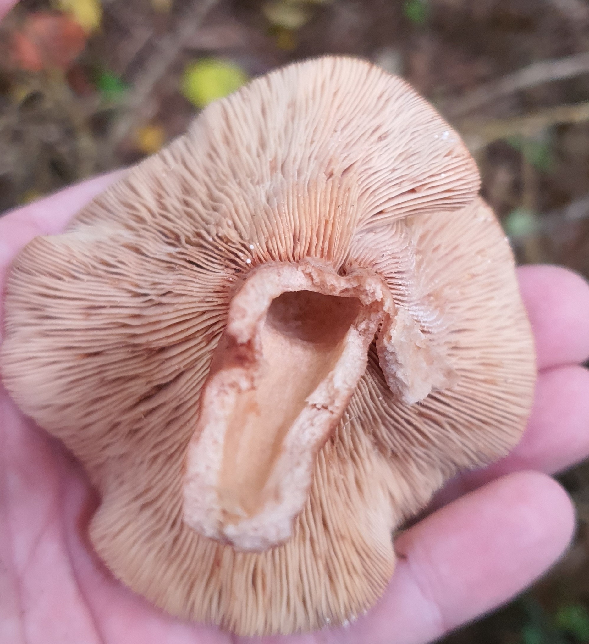 Lamellen: dicht, blass creme dann blass rötlichocker