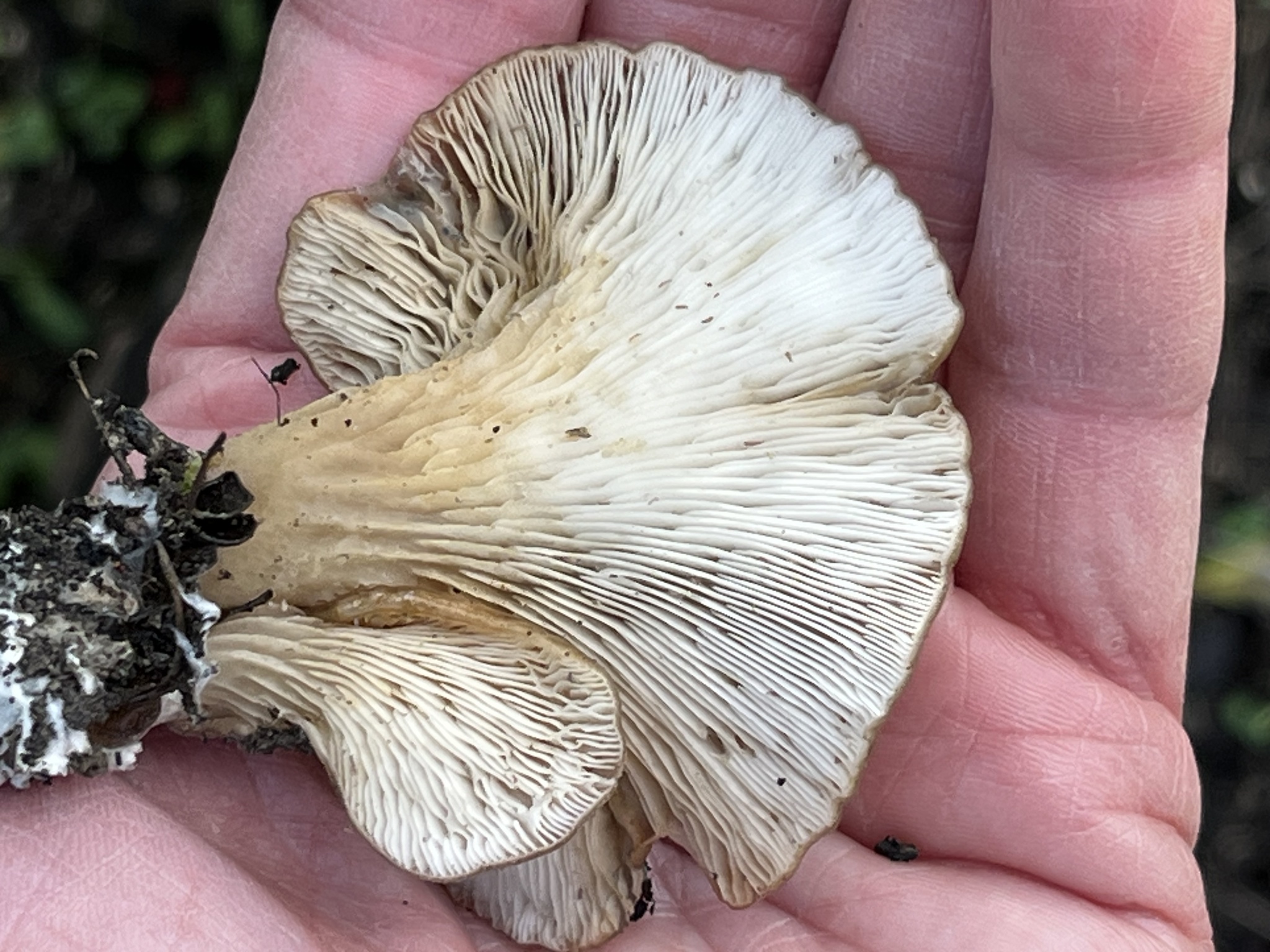 Lamellen: weisslich bis creme, breit, schlitzig, Schneiden grob gezähnt.