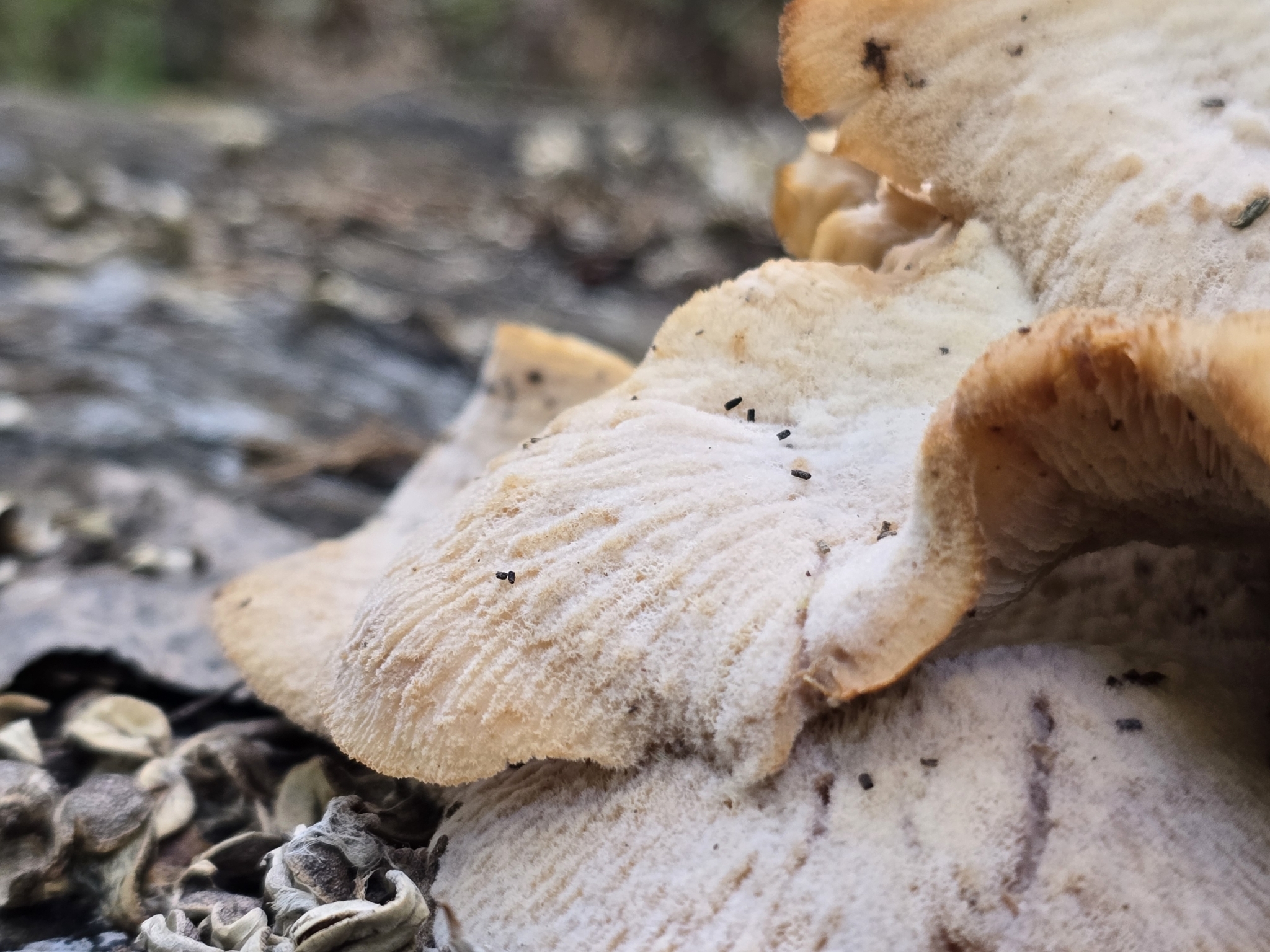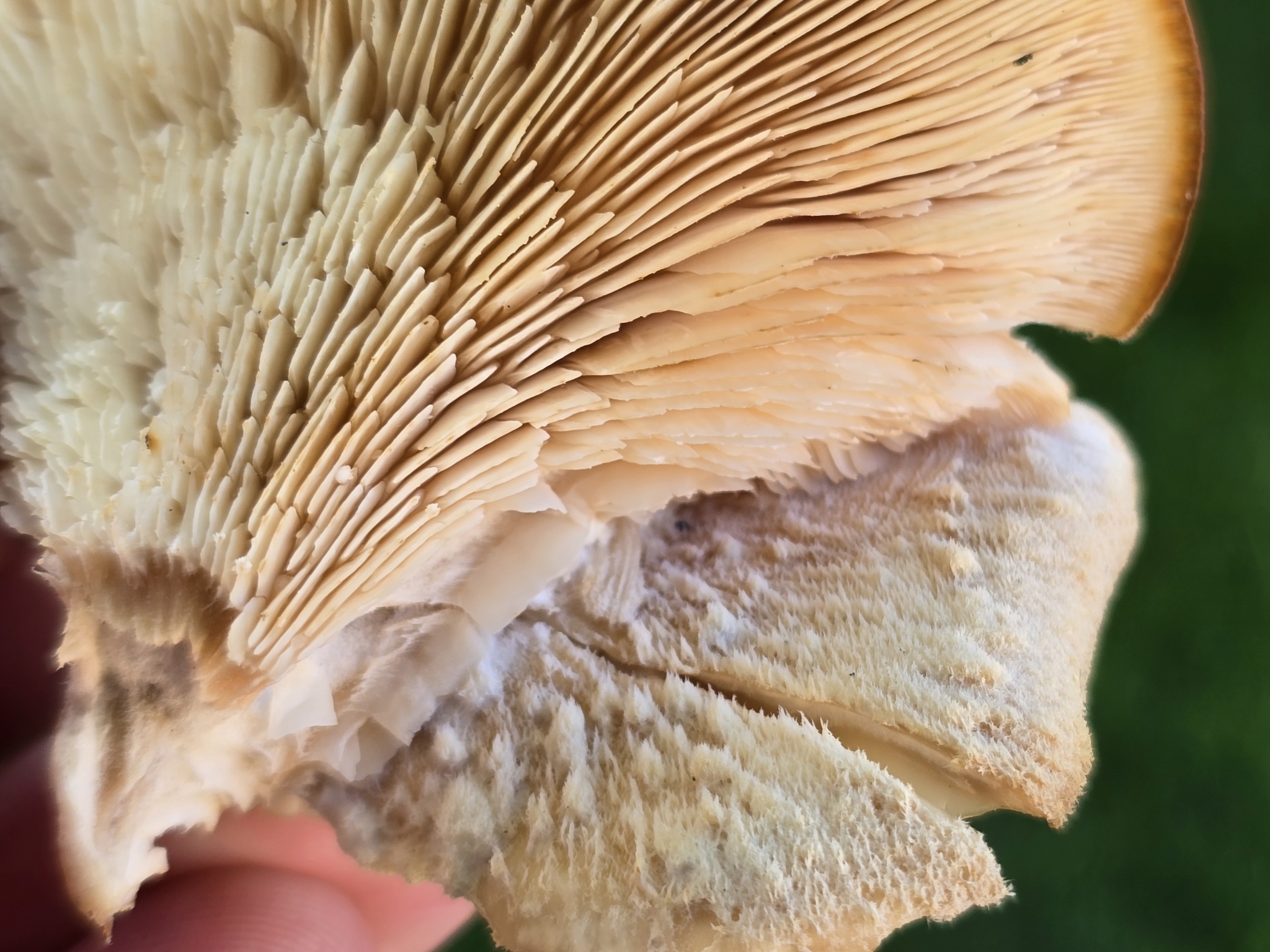 Lamellen: weisslich bis rötlich, sehr dicht, Schneiden rissig bis gezähnt