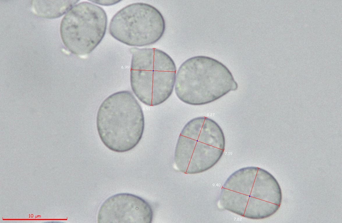 Hutbreite: 2.00 ... 5.00 cmSporenmaße Länge x Breite: 7.00 - 10.30 x Breite: 4.50 - 6.50 µm