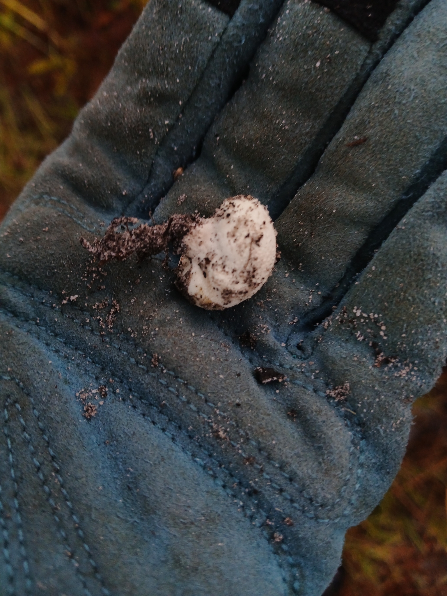 Mit Myzelstrang. Außerhalb des Waldes auf Sand, zerstreut.