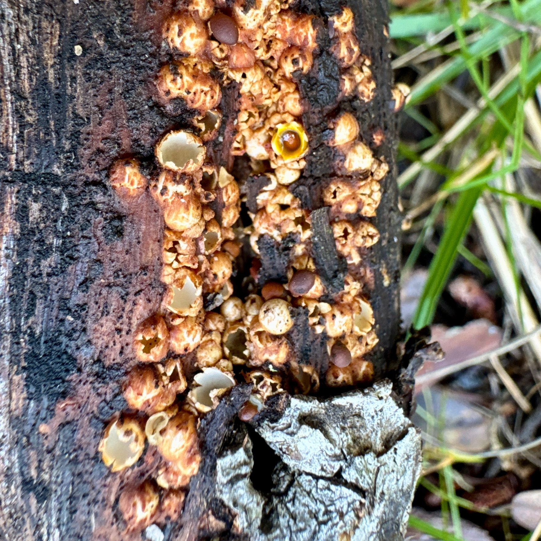 Vorkommen: Der Pilz wächst auf altem Holz, Rinde, Rindenmulch und anderen Holzresten von Frühjahr bis Herbst. Gerne gesellig.