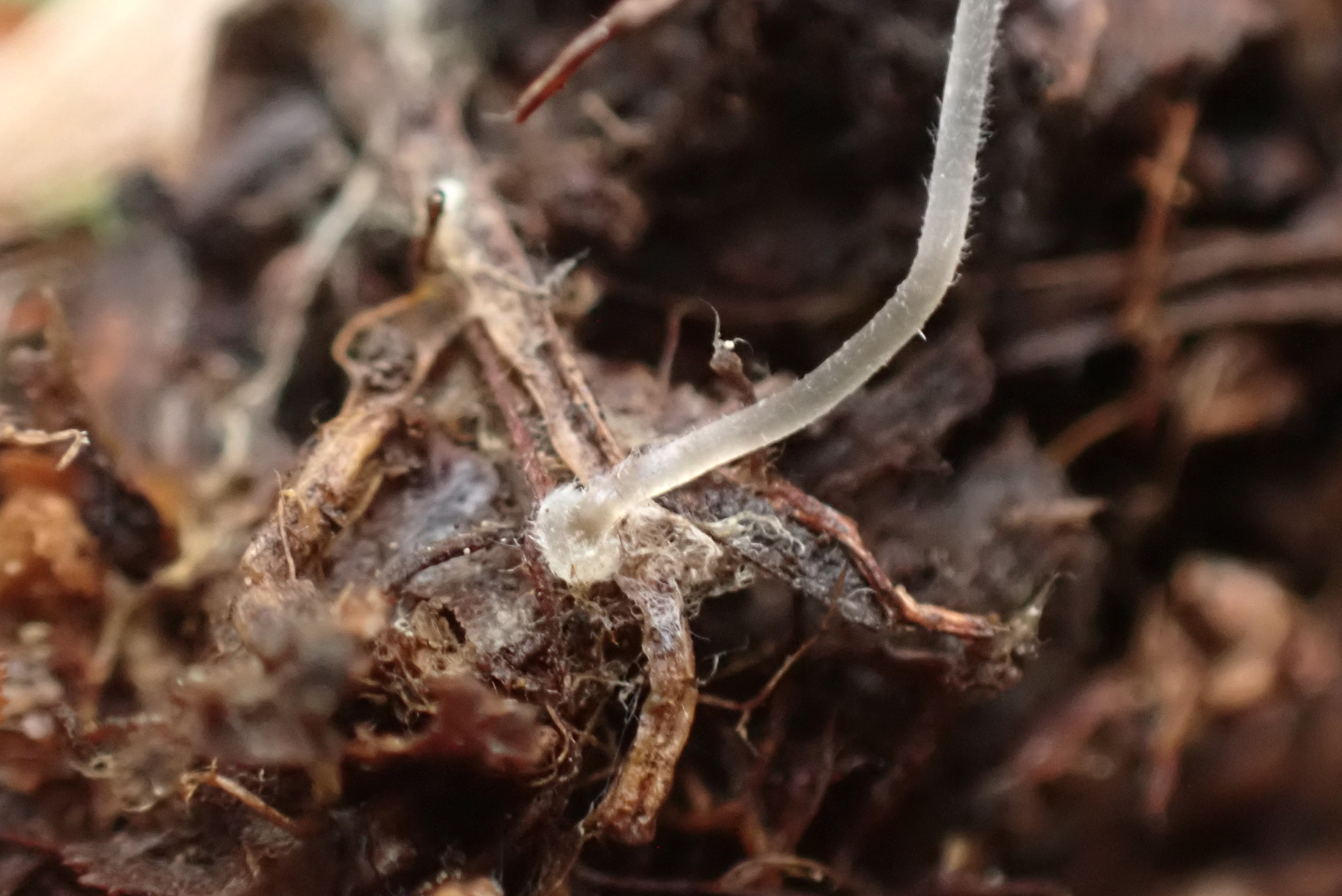 Stiel: gerade, zylindrisch, vollständig grau, mit ca. 1 mm Scheibe an der Basis und leichten häärchen