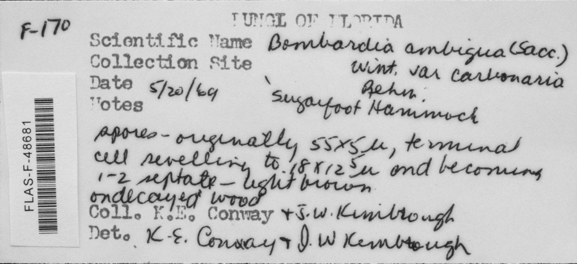 Bombardia ambigua var. carbonaria (Rehm) G.Winter