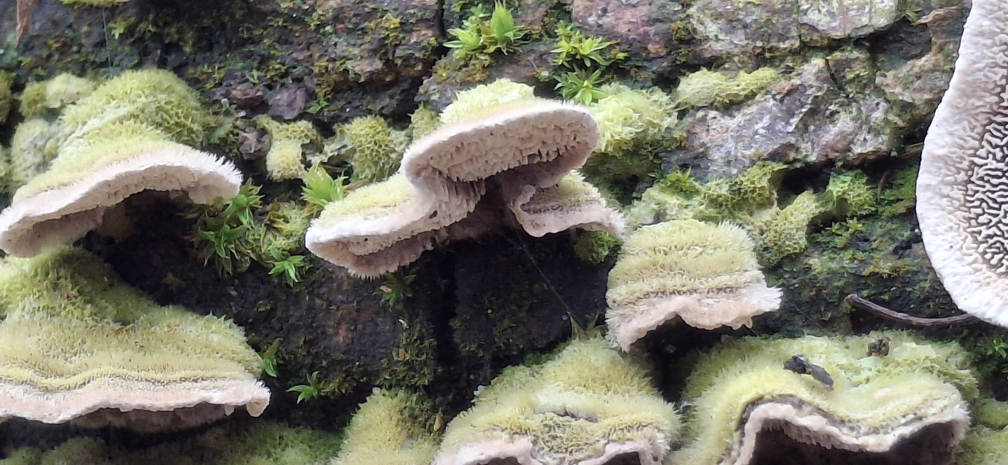 Lamellen: weisslich bis graubräunlich, schmal, entferntstehend, teils rundlich teils sehr verlängert und labyrintisch verbogen, ca. 4 mm tief
