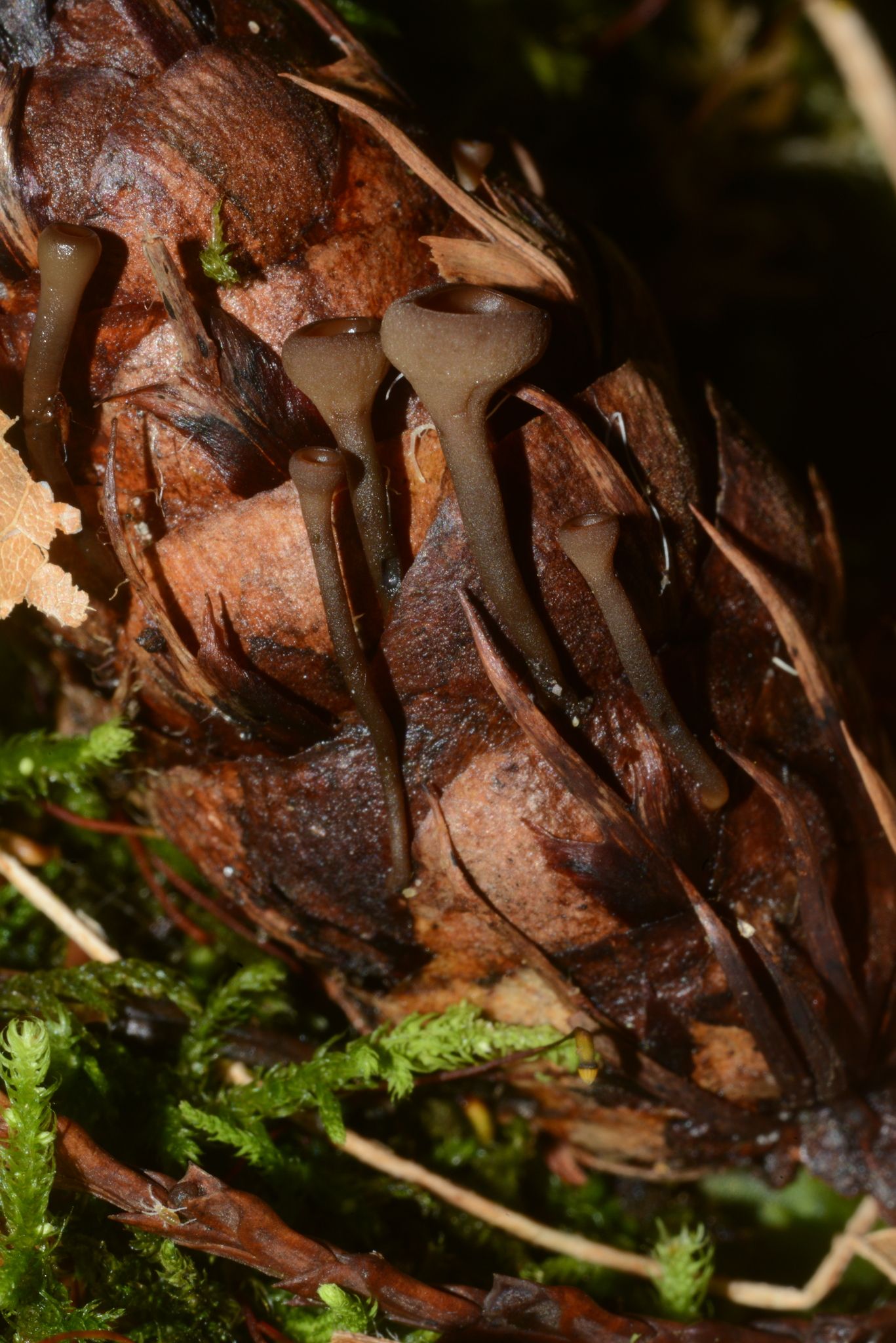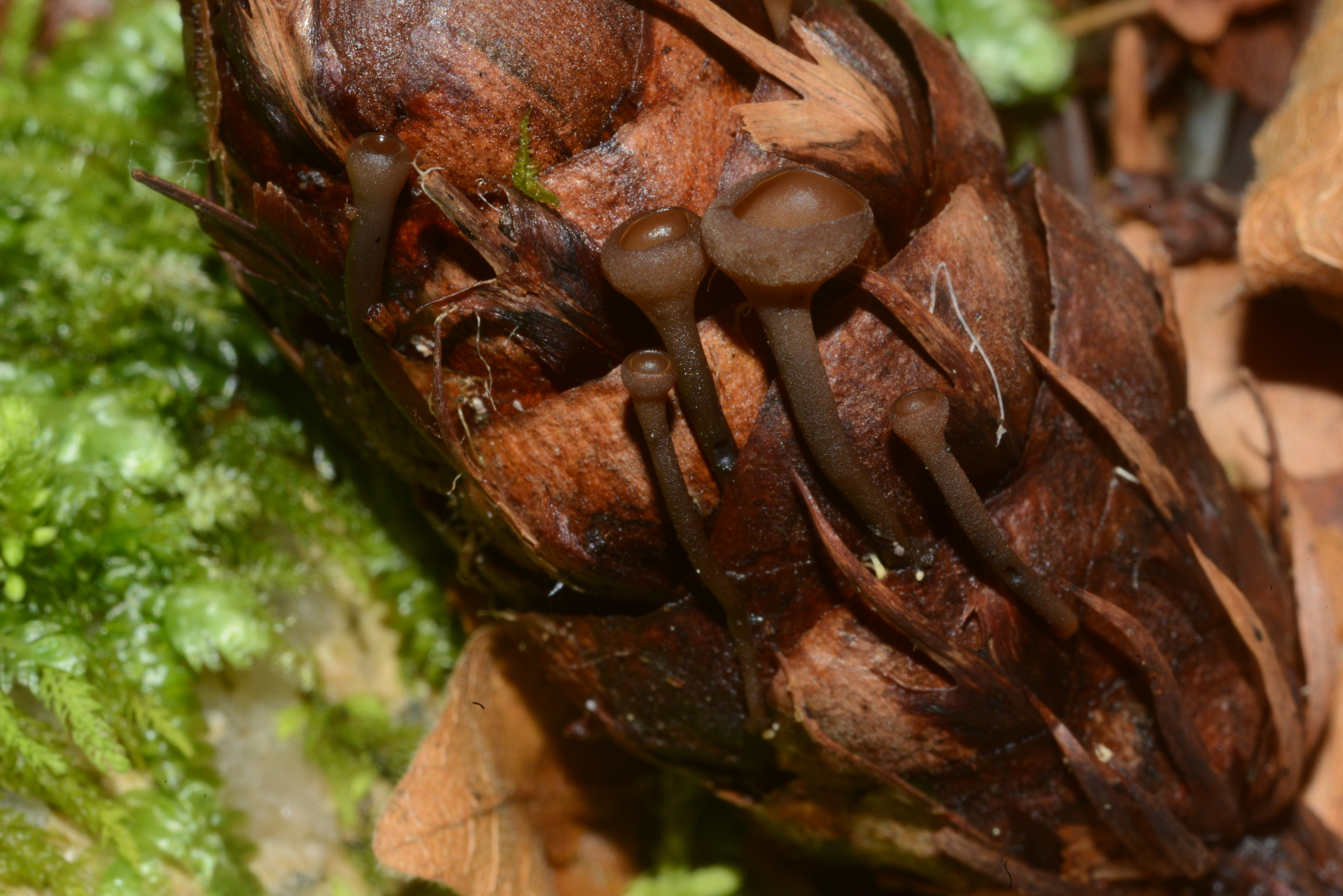 Home > Ascomycota > Leotiomycetes > Helotiales > Sclerotiniaceae > Ciboria > Zapfenschuppen-Sromabecherling