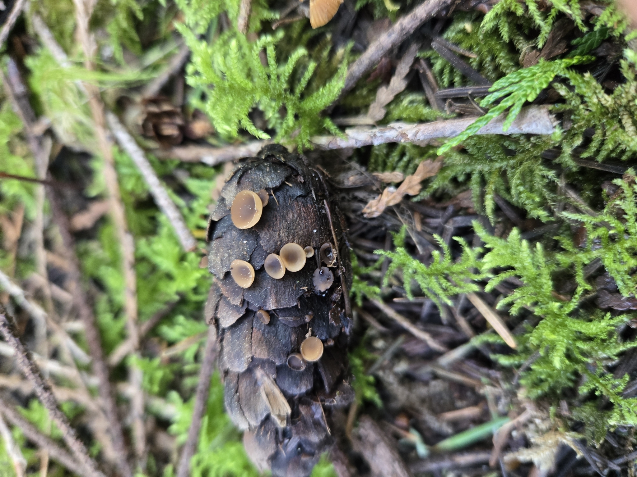 Vorkommen: Auf den Schuppen abgefallener Tannenzapfen.