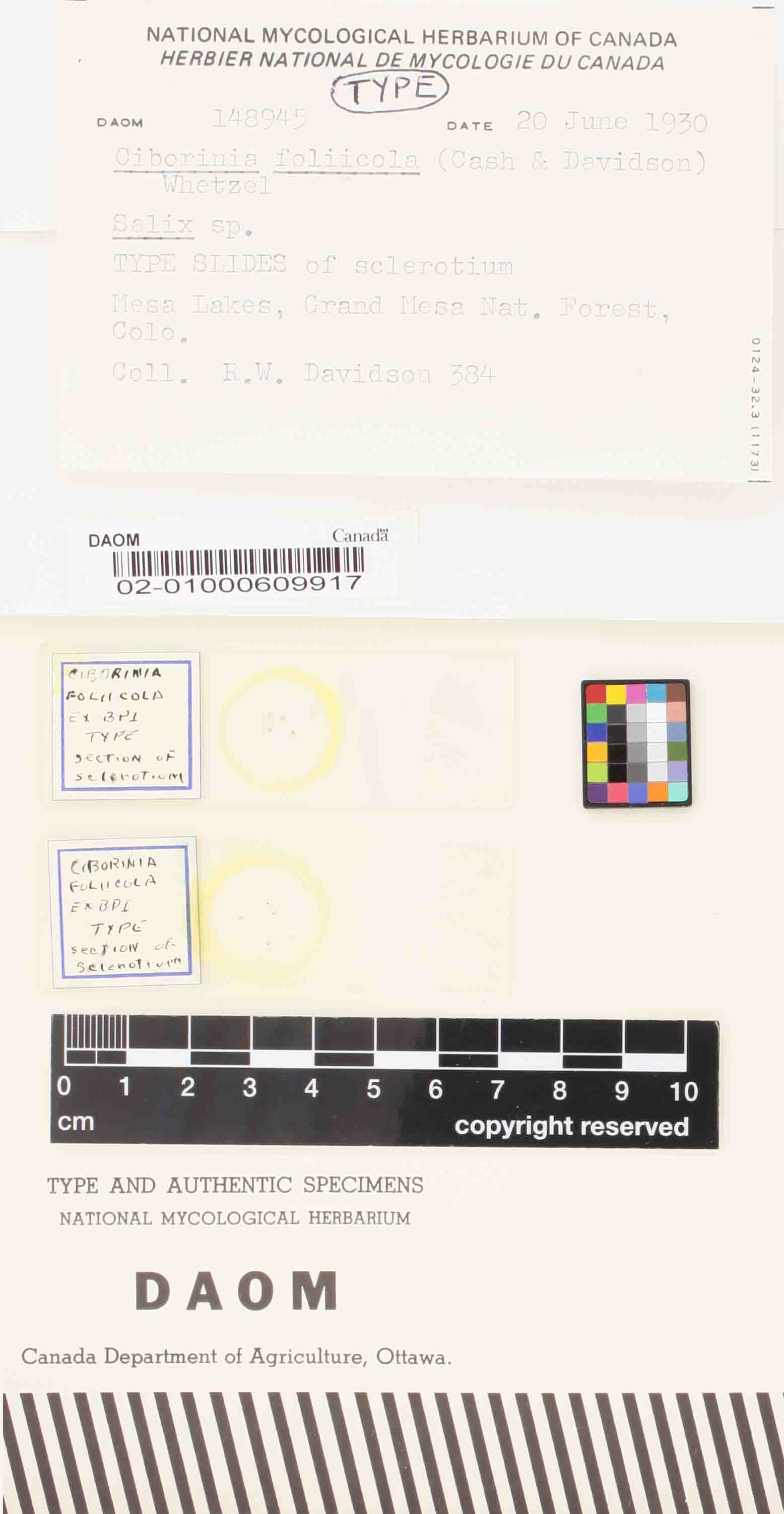 Ciborinia foliicola (E.K. Cash & R.W. Davidson) Whetzel 1945