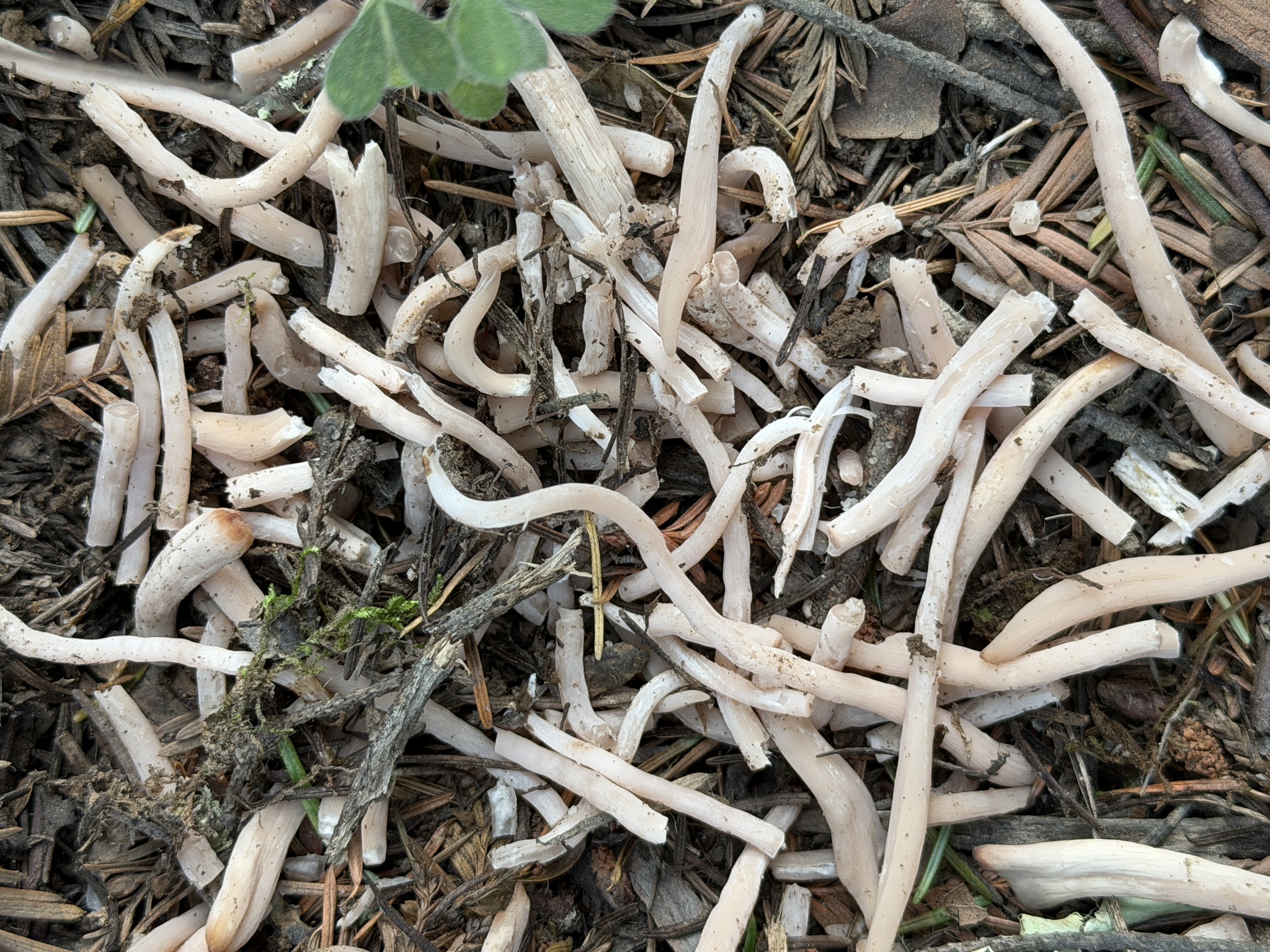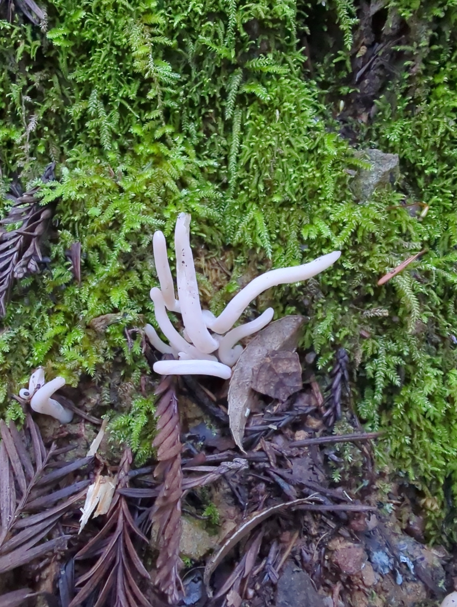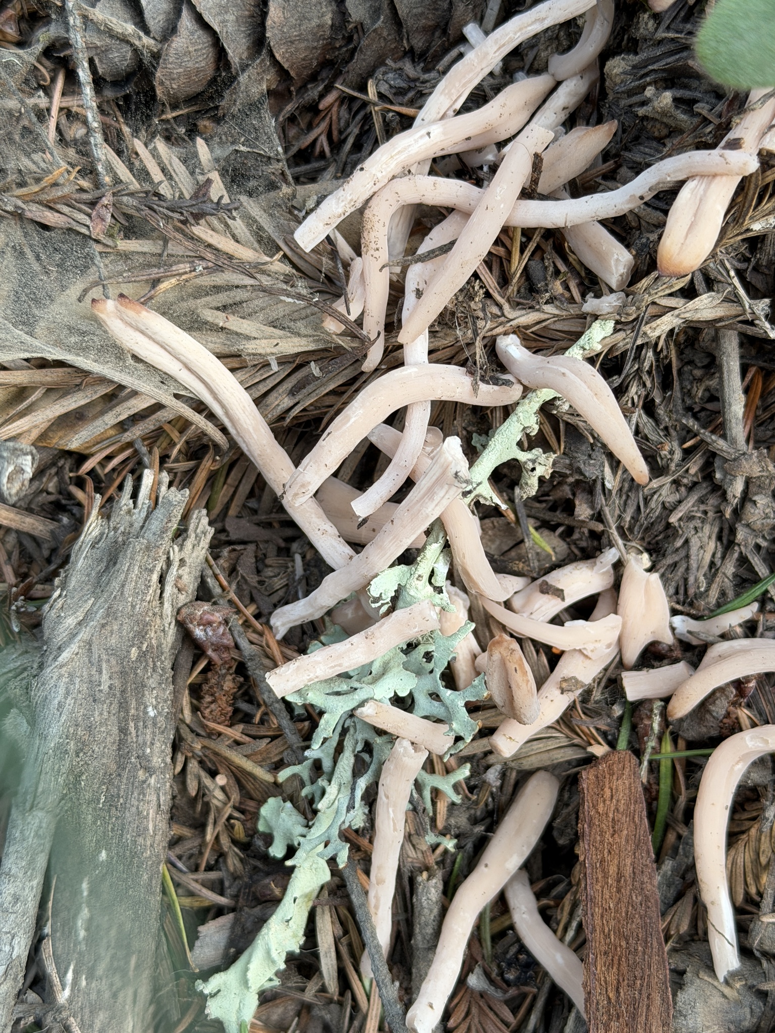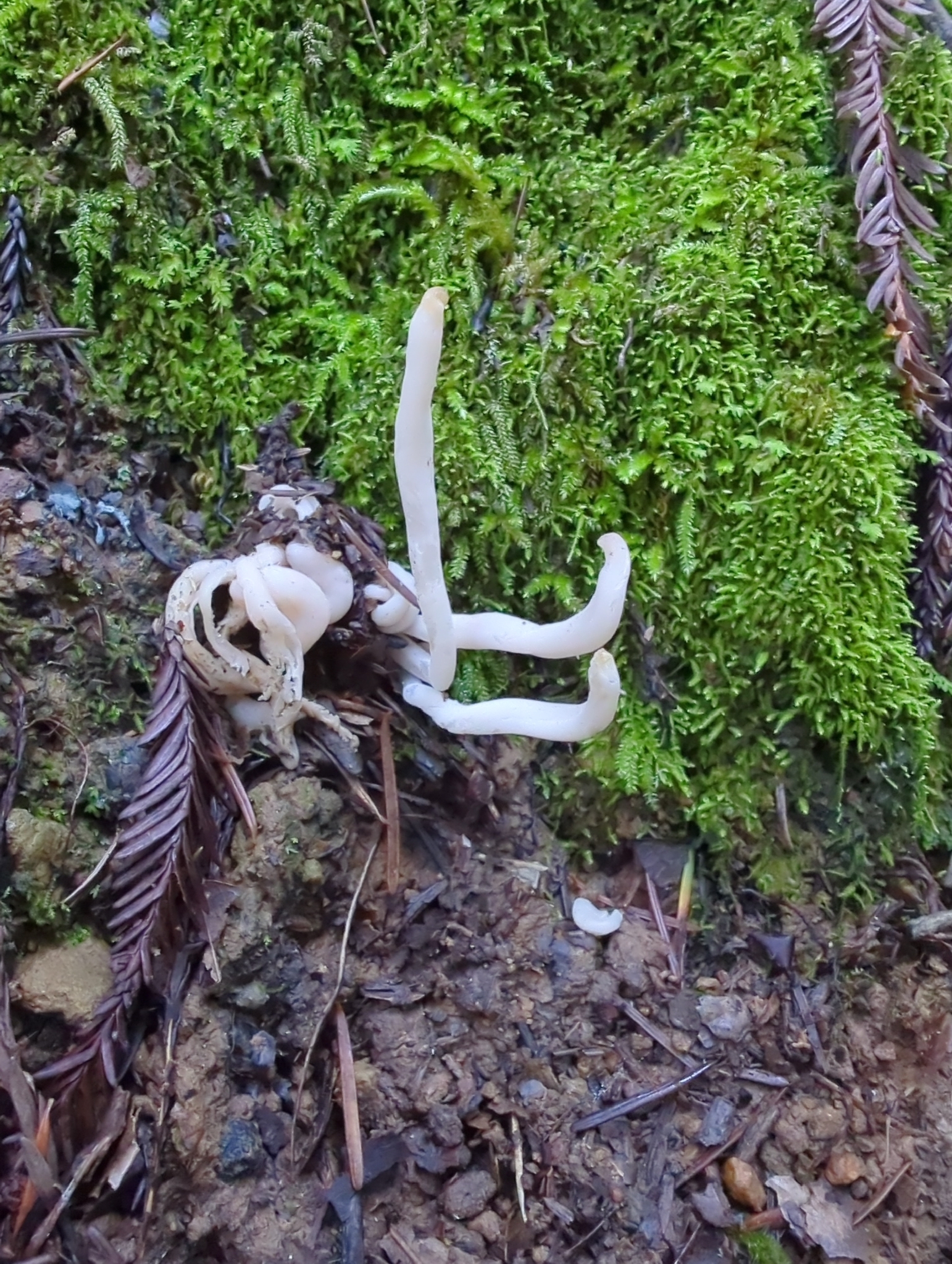 Fruchtkörper: Fruchtkörper büschelig, röhrenförmig, glatt, zerbrechlich, straff, schwach zusammengedrückt, russfarbig, später grau werdend, 5 —8 cm hoch.
