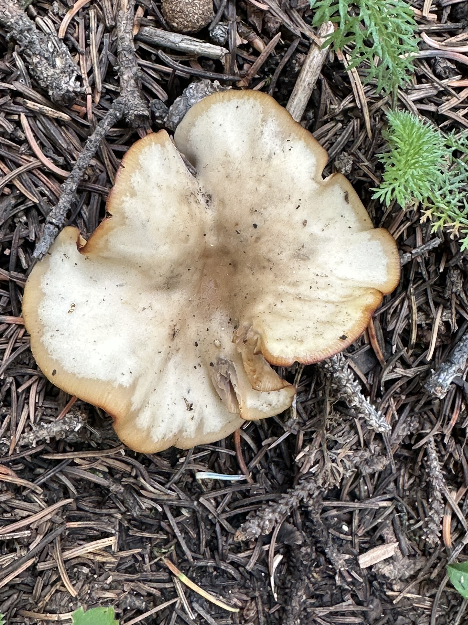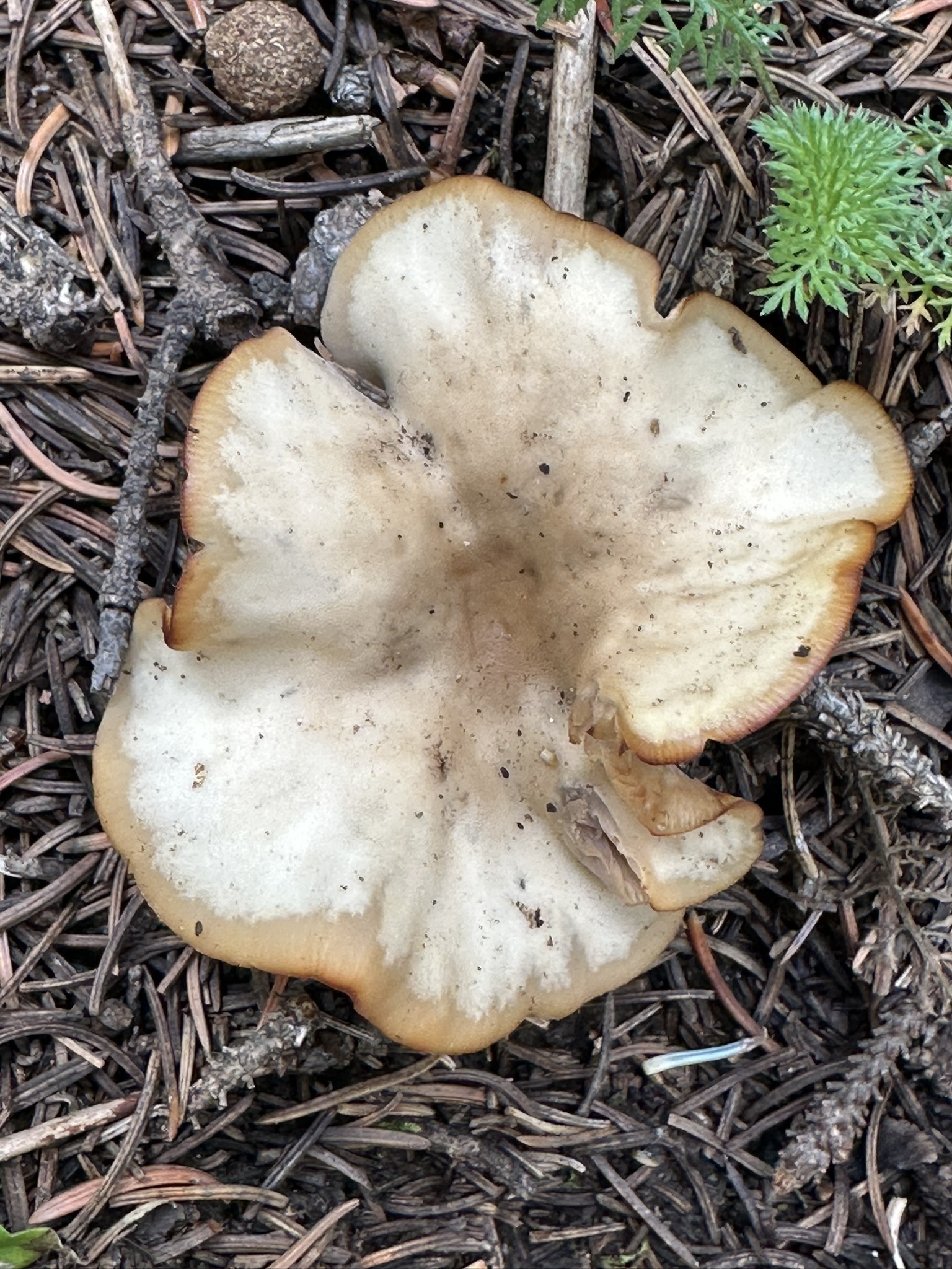 Hut: jung gewölbt, dann schnell trichterförmig, gelblich ocker, Rand oft lappig