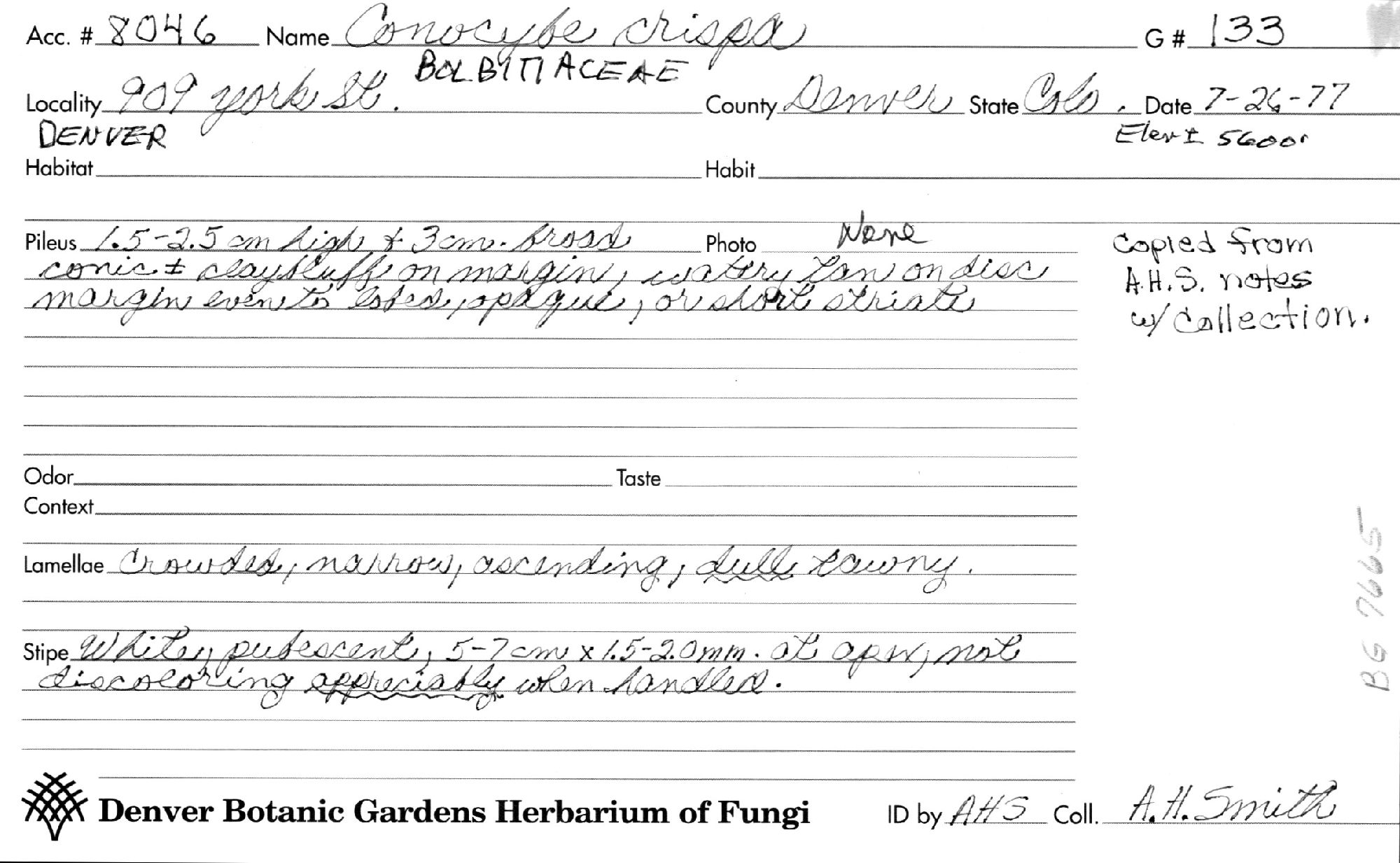 Conocybe albipes var. crispa (Longyear) Hauskn. 1998