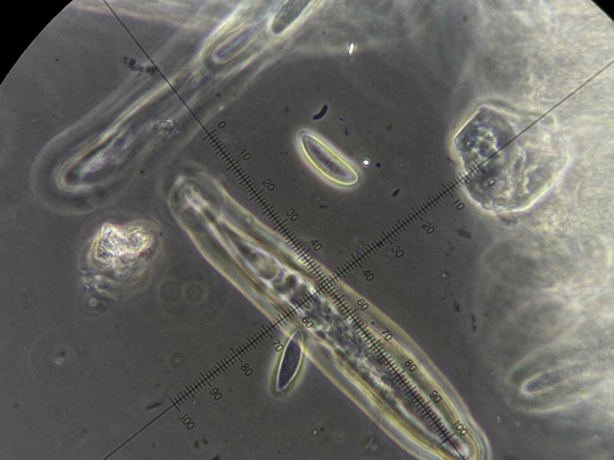 Sporen: Schläuche keulenförmig, 100—110 µm lang, 12—13 µm breit, achtsporig. Sporen oben zwei-, unten einreihig, elliptisch -spindelförmig, stumpf, an einer Seite abgeflacht, 15—20 µm lang, 4—4,5 µm breit. Inhalt gleichmässig. Paraphysen fadenförmig, 2 µm breit, oben nicht verdickt.