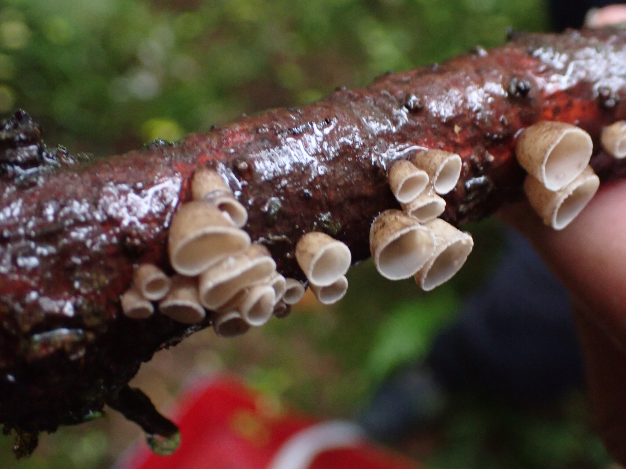 Home > Basidiomycota > Agaricomycetes > Polyporales > Cyphellaceae > Cyphella > Weisstannen-Fingerhut