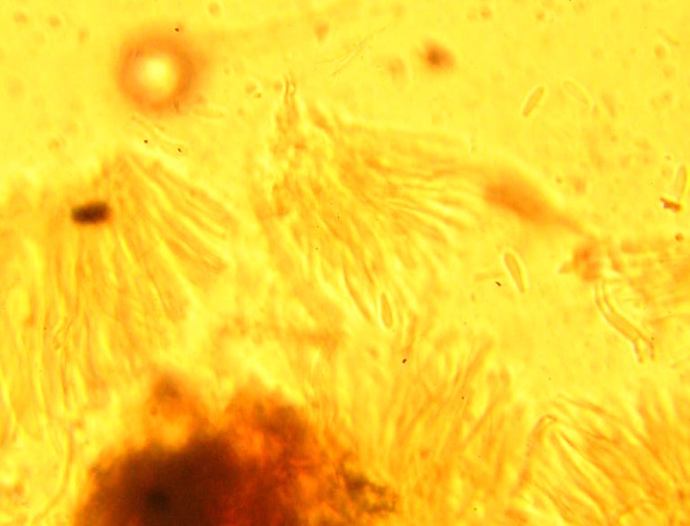 Sporen: Schläuche zylindrisch- keulenförmig, am Scheitel abgerundet, 75— 80 µm laug, 7—9 µm breit, achtsporig. Sporen ein- oder zweireihig, ei- oder keulenförmig, anfangs ein-, später zweizeilig, farblos, 6 —9 jU lang, 3—3,5 µm breit. Paraphysen fadenförmig, oben bis auf 5 µm verbreitert, olivenbraun, ein Epithecium bildend.