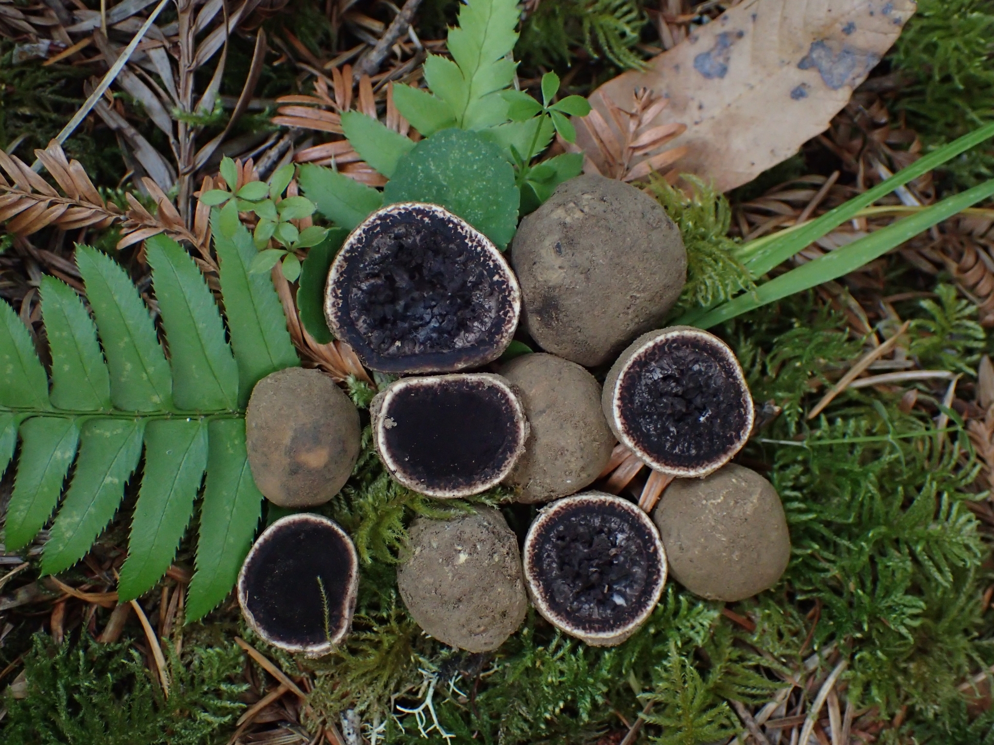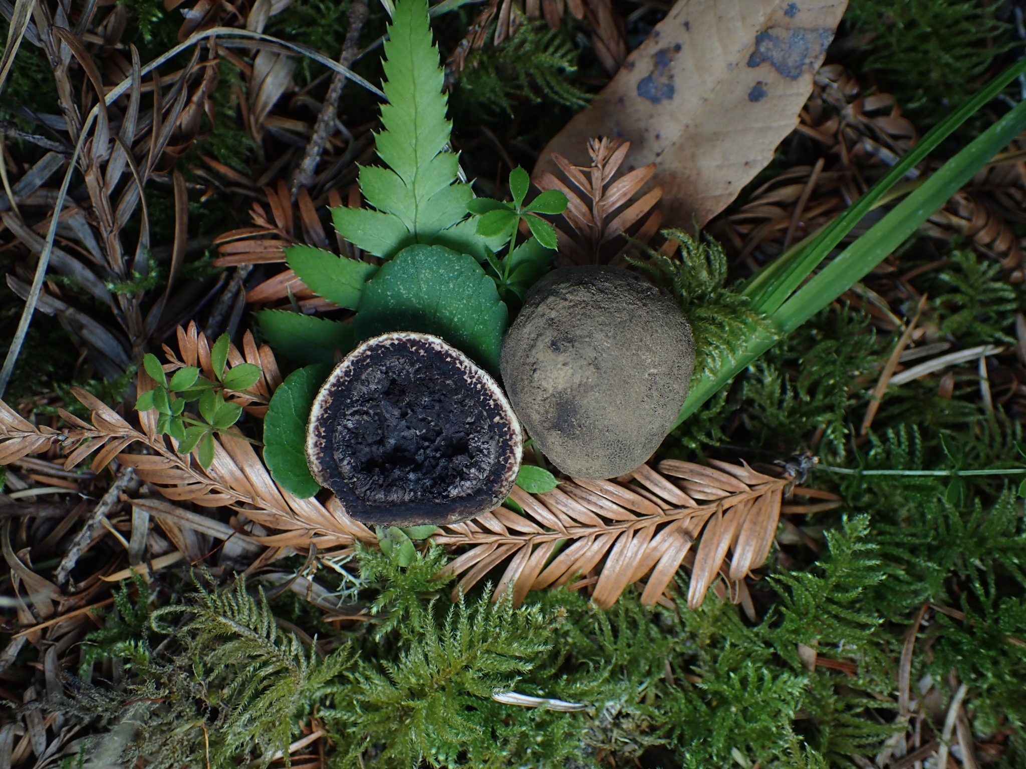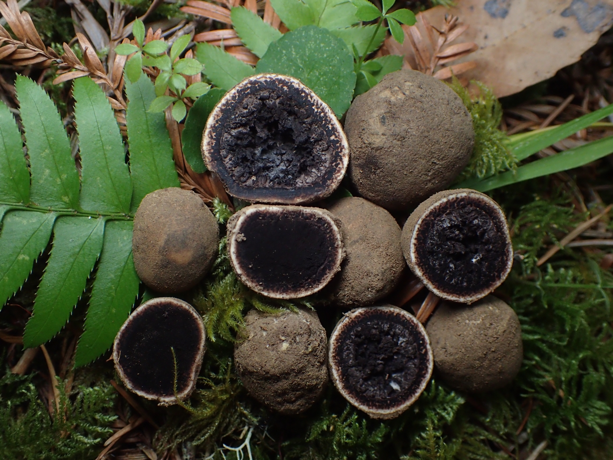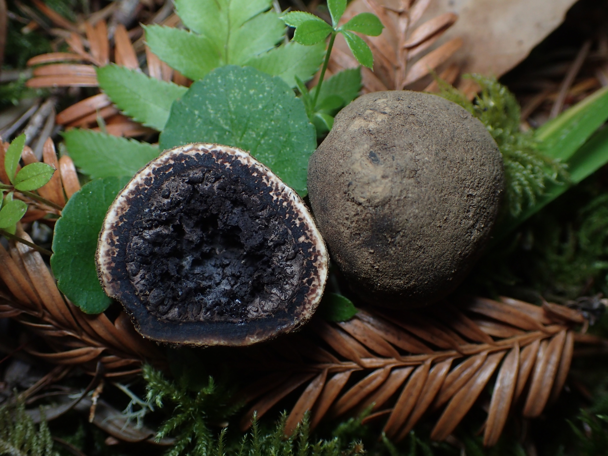Fruchtkörper: Fruchtkörper regelmässig, fast kugelig, bis etwa 1 cm dick, mit rötlich-gelbbrauner bis ockergelber Oberfläche. Peridie 0,5-1,5 mm dick, Rinde nur 40—50 µm dick, aus dicht nebeneinander stehenden, polygonalen, abgeflachten Warzen bestehend, die durch scharfe Einschnitte getrennt sind; die Einschnitte sind teilweise oder ganz durch weitlumige, parallel liegende Hyphen ausgefüllt. Innere Peridienschicht von weisslichen, unregelmässigen, breiten, anastomosierenden Adern durchzogen, welche unregelmässig gestaltete braune Felder abgrenzen.