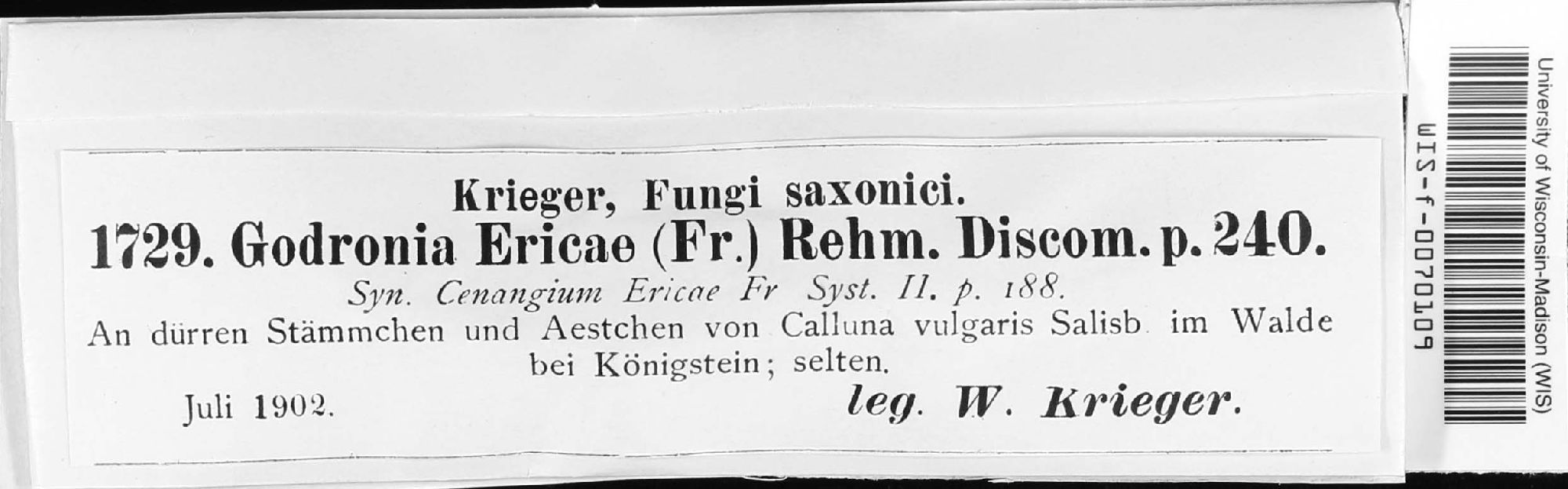 Godronia ericae (Fr.) Rehm 1889