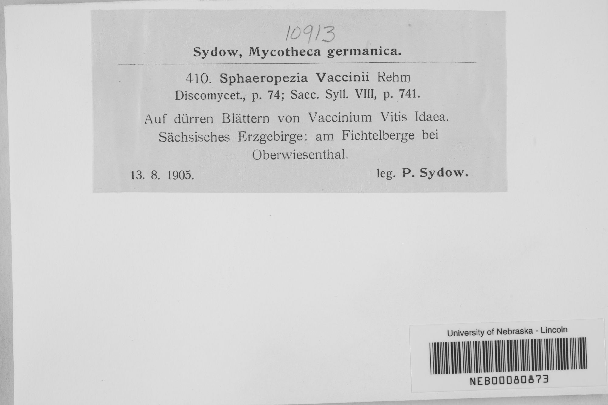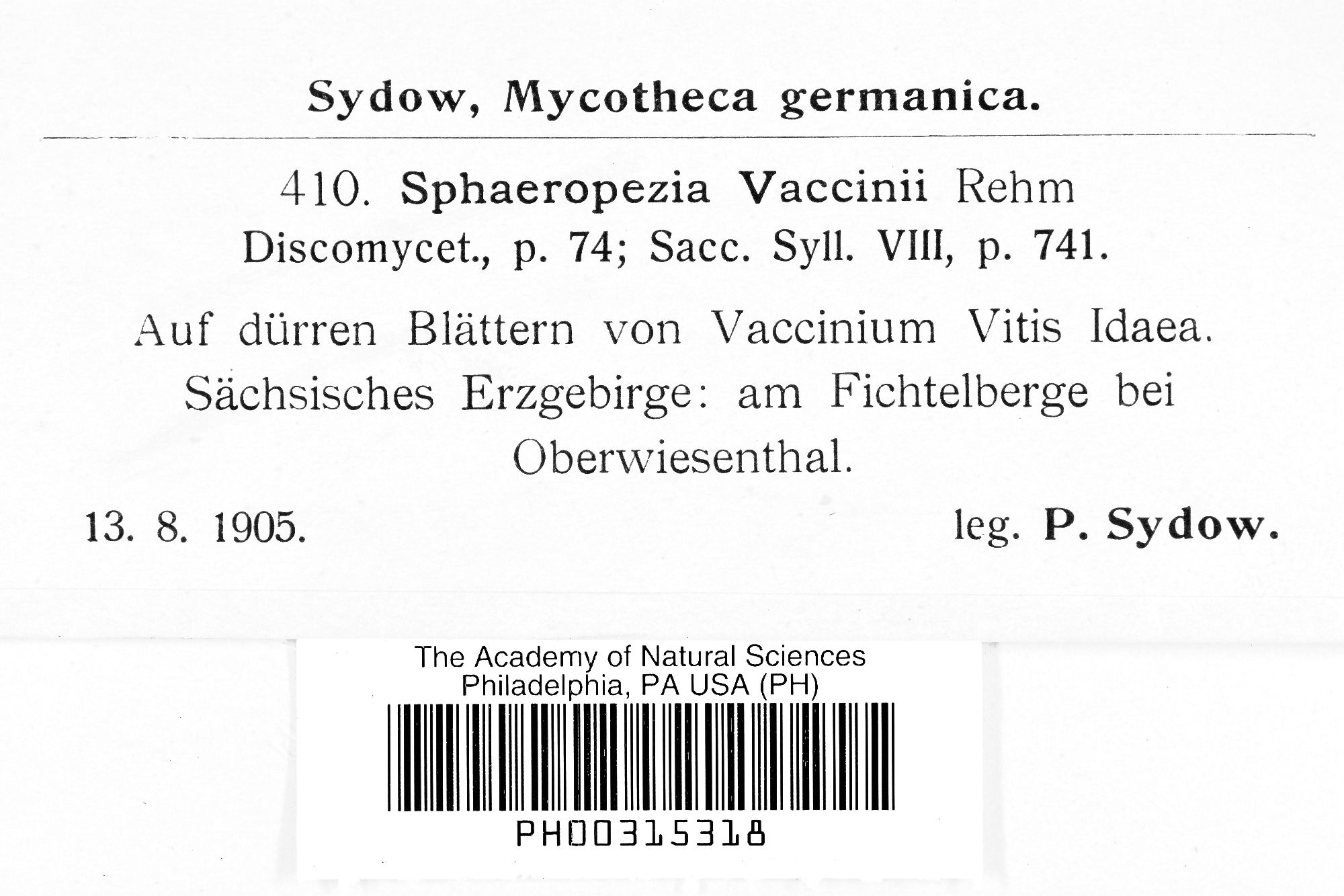 Sphaeropezia vaccinii Rehm 1888