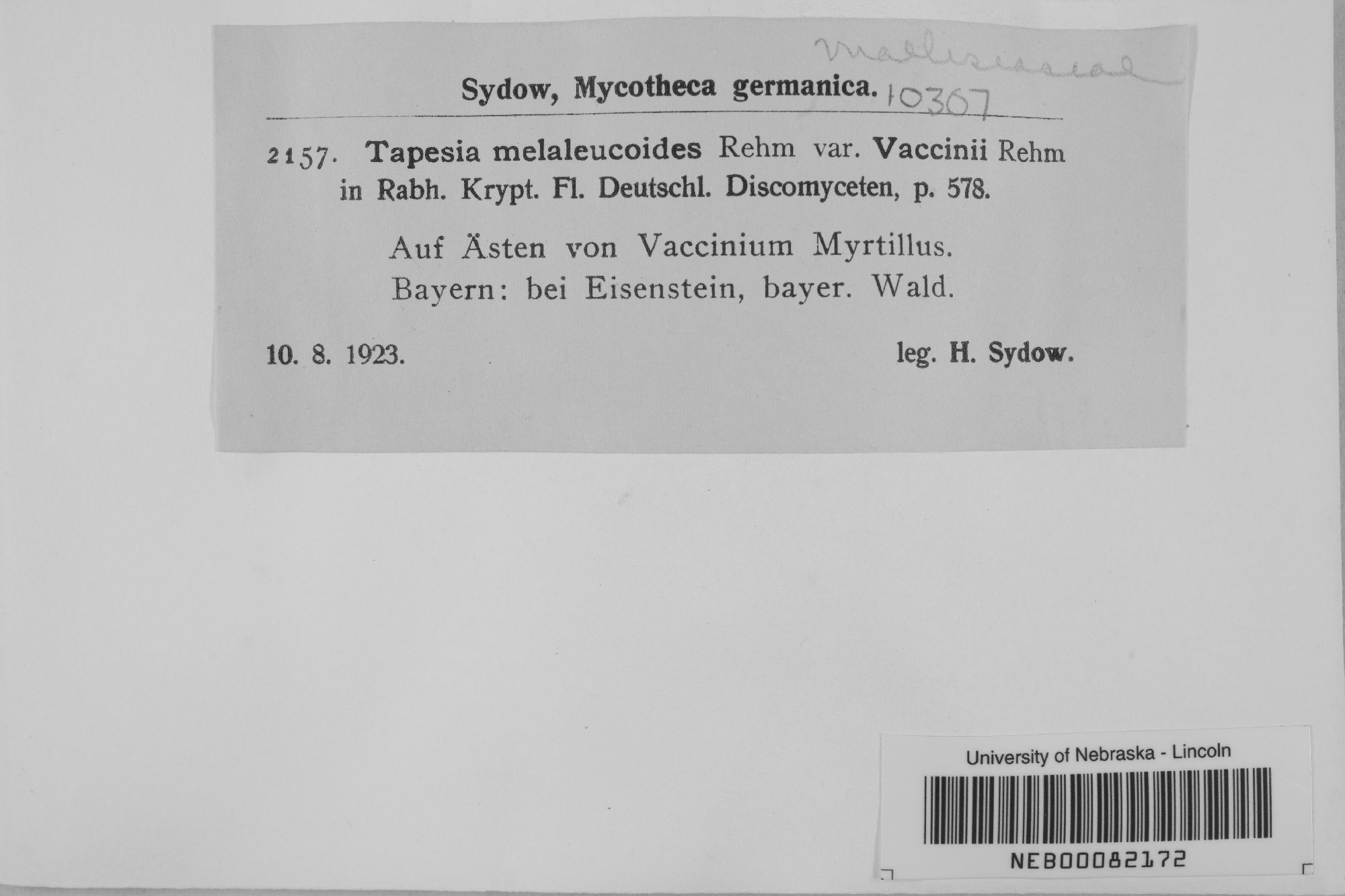 Tapesia melaleucoides var. vaccinii (Rehm) Rehm
