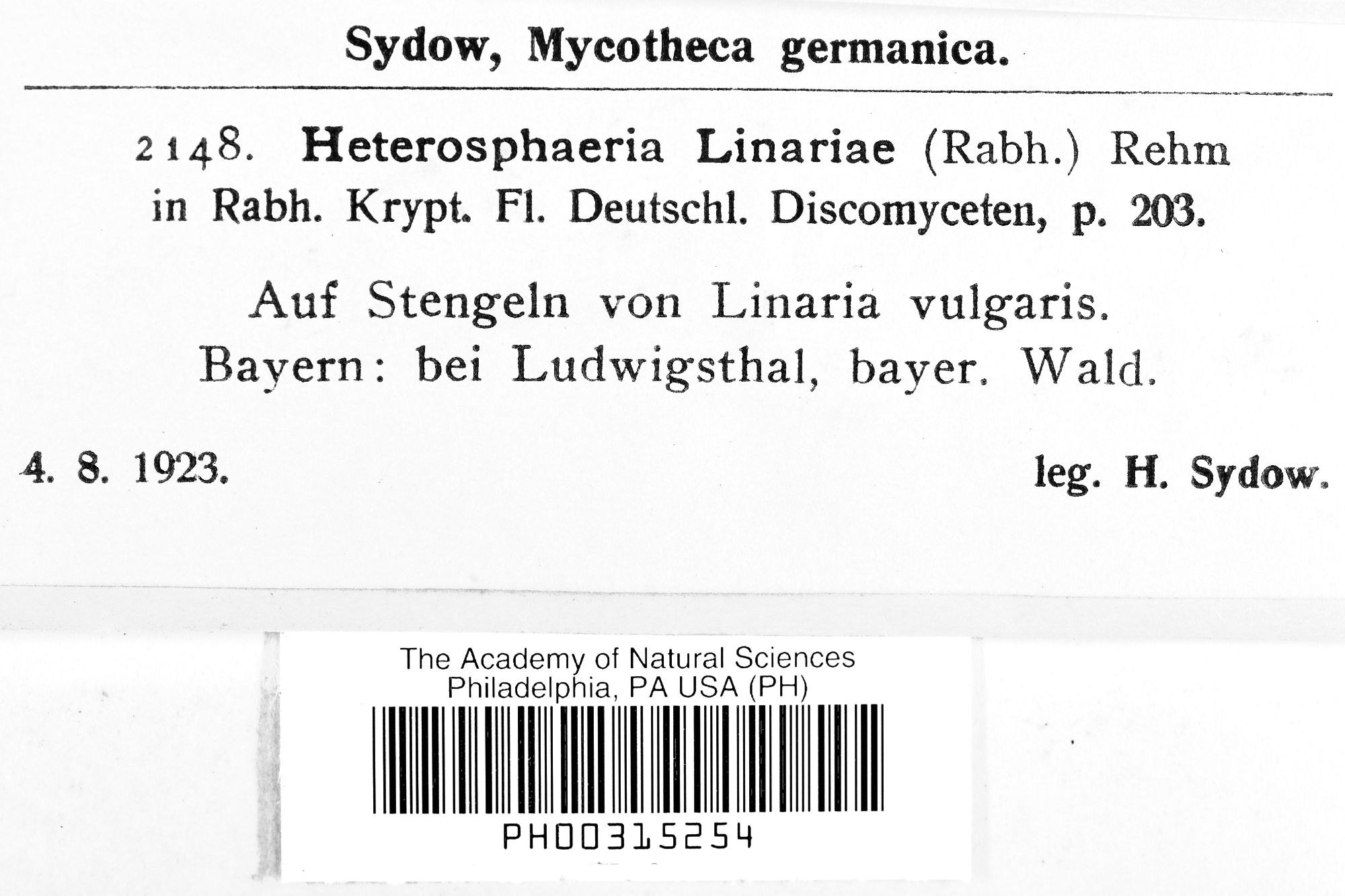 Heterosphaeria linariae (Rabenh.) Rehm 1888