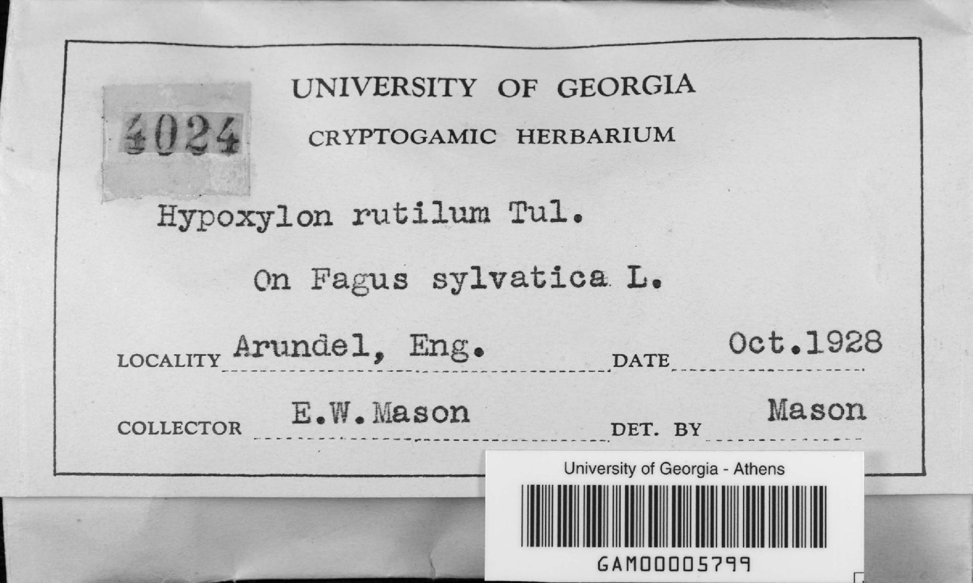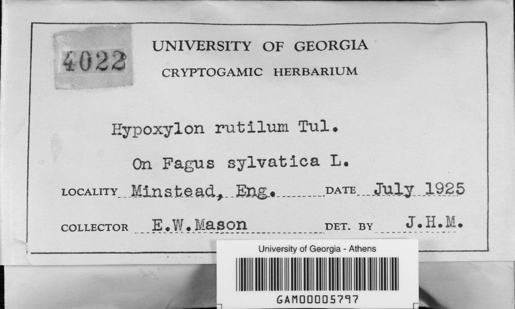 University of Georgia, Julian H. Miller Mycological Herbarium (GAM-)