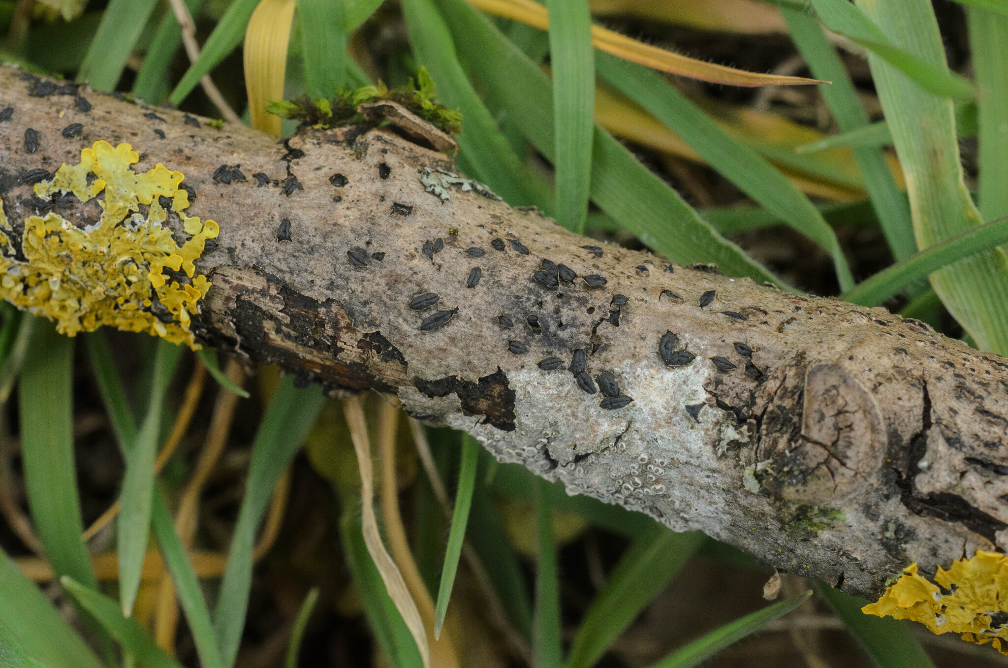 Vorkommen: Auf Zweigen von Gemeine Esche, Gewöhnliche Esche oder Hohe Esche (Fraxinus excelsior), auch auf Weiden.