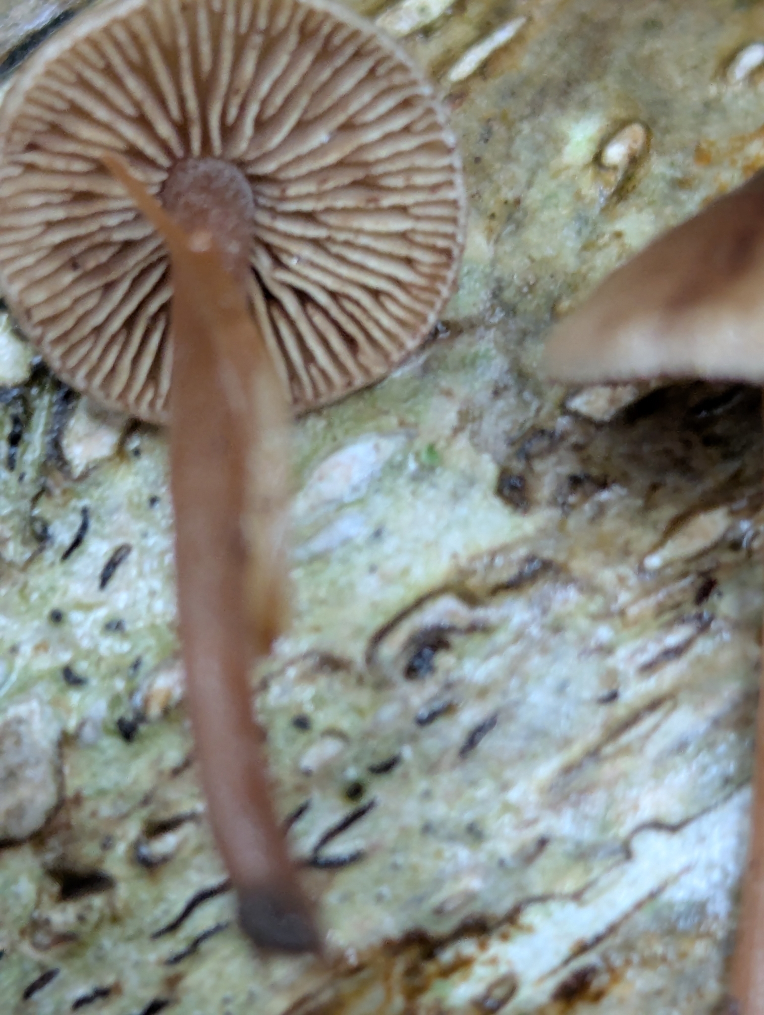 Stiel: Stiel voll, schlank, zäh, pulverig bereift, gelblichbraun bis rotbraun