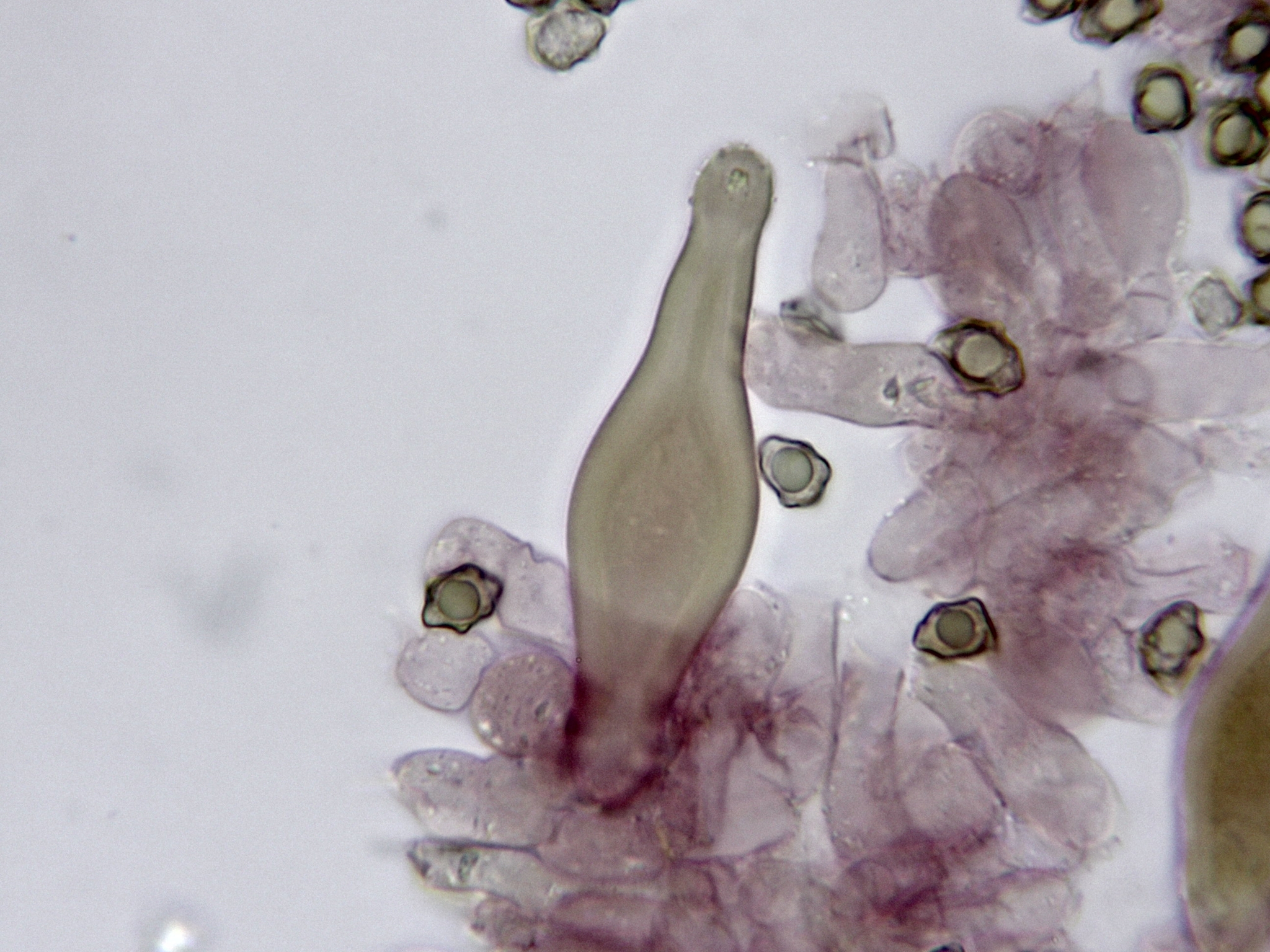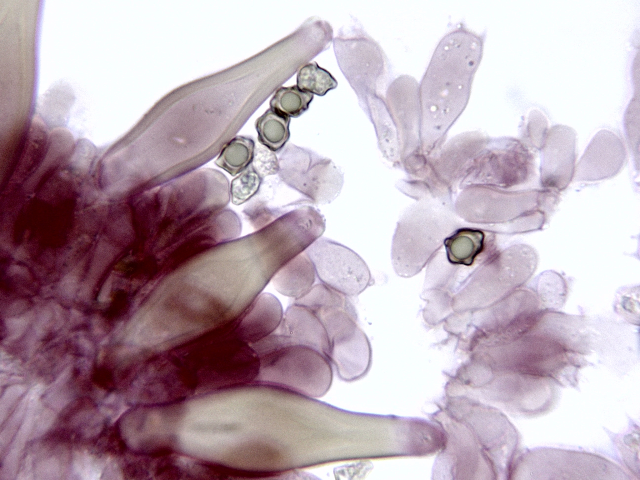 Lamellen: frei, bauchig, jung gelb, dann olivenfarbig kastanienbraun.