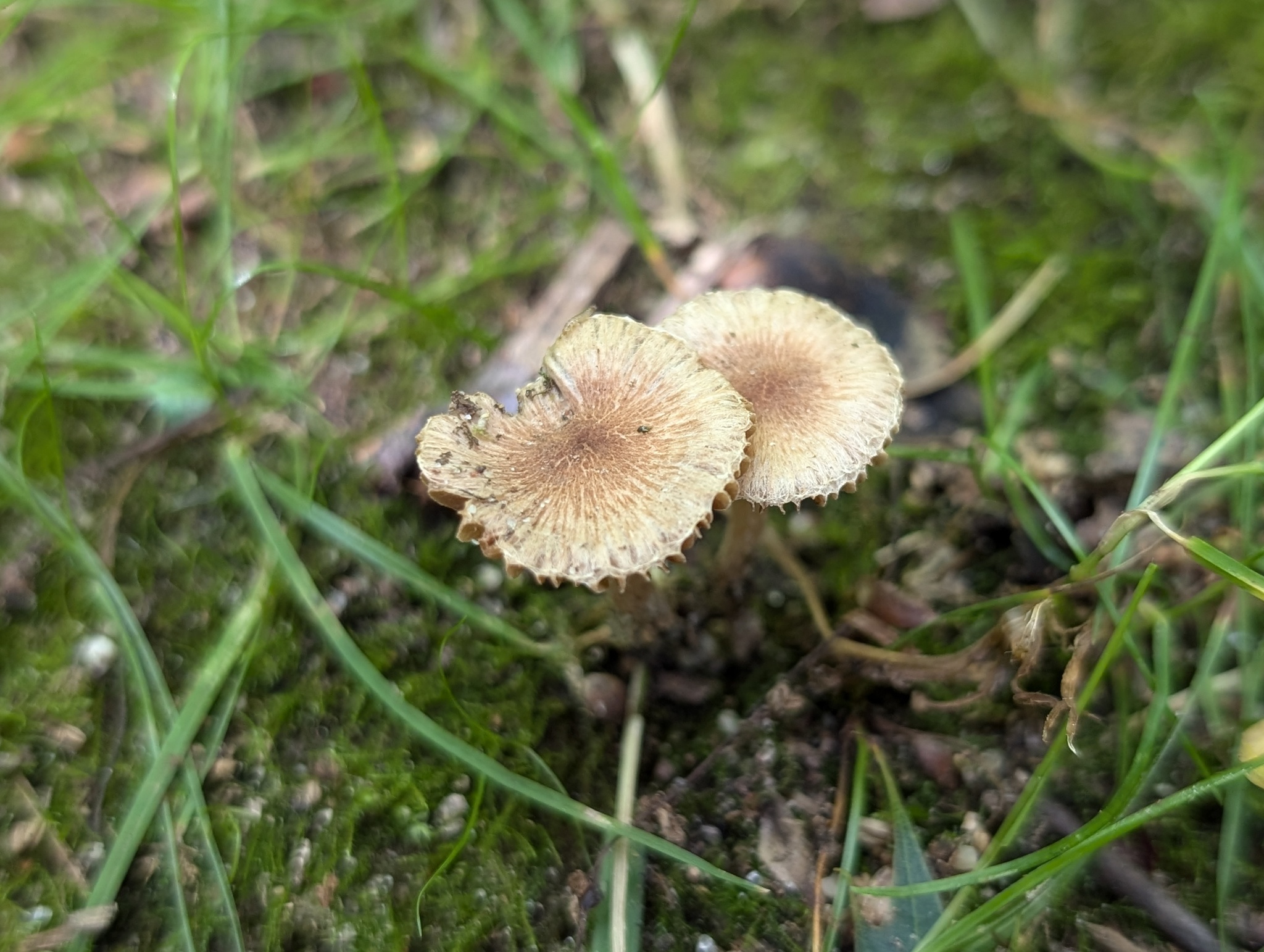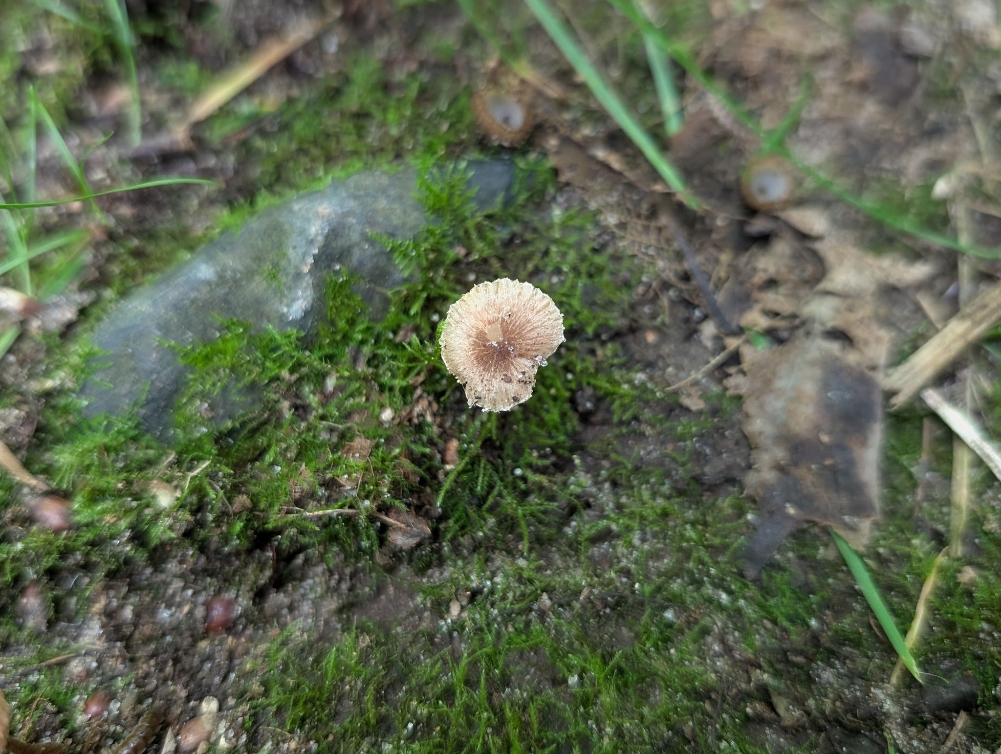 Lamellen: weisslich bis graubräunlich, gekerbt, gedrängt, ausgebuchtet angewachsen.