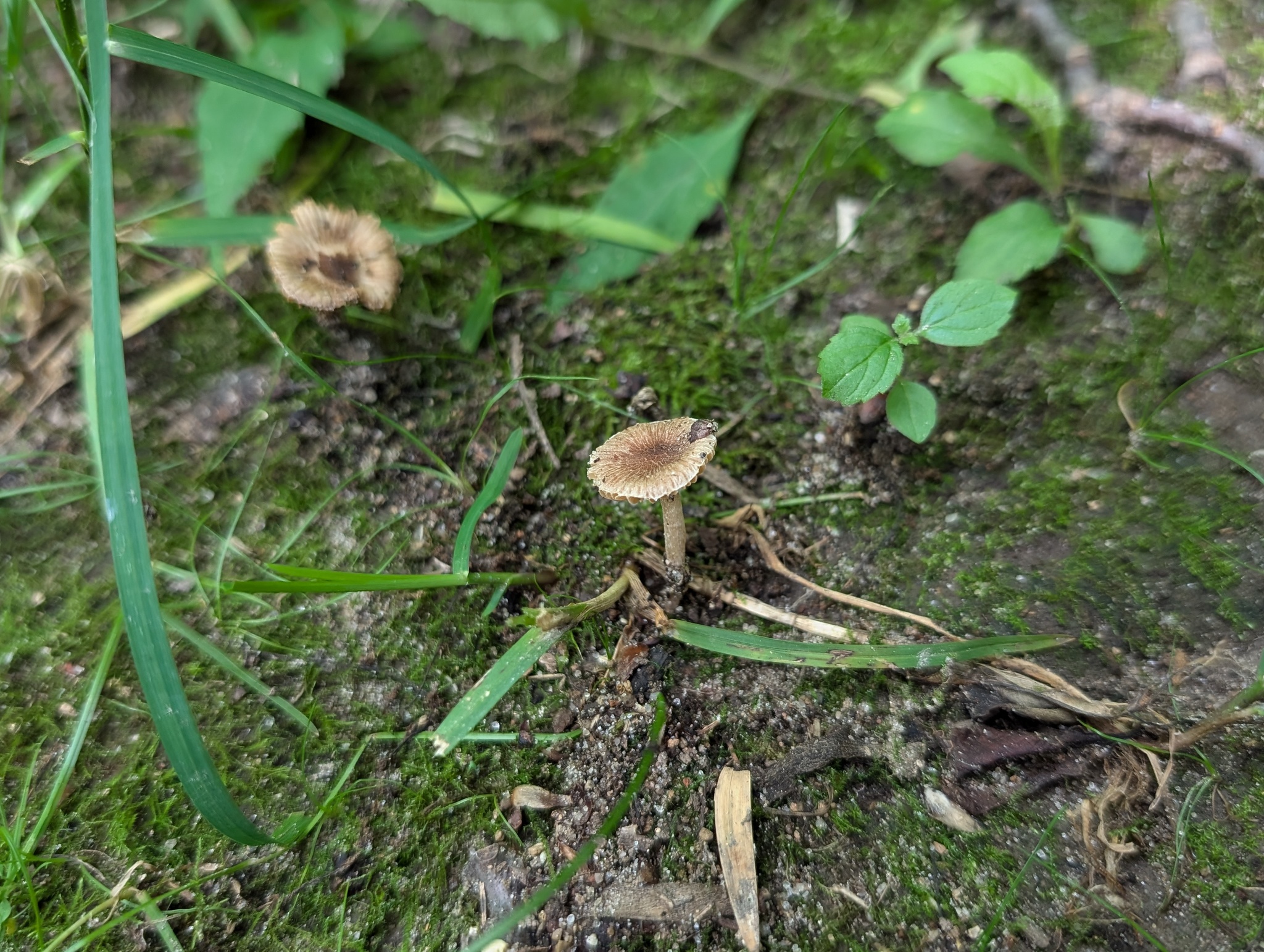 Hut: jung kegelig glockig, dann ausgebreitet und gebuckelt, längsrissig, graubräunlich bis braun, ausblassend, seidenfaserig, mit weisser Cortina, mit schmutzig weisslichem Rand.