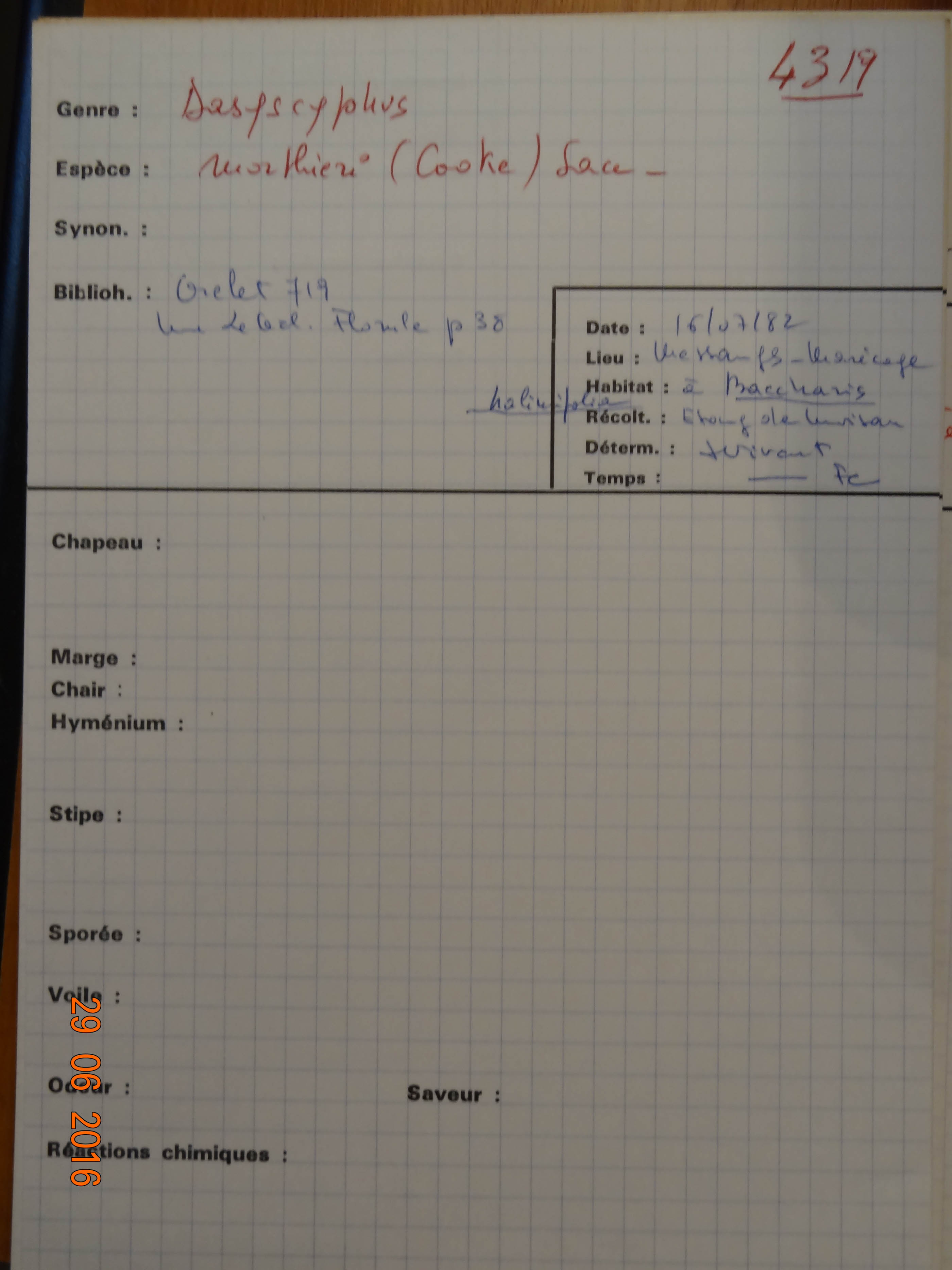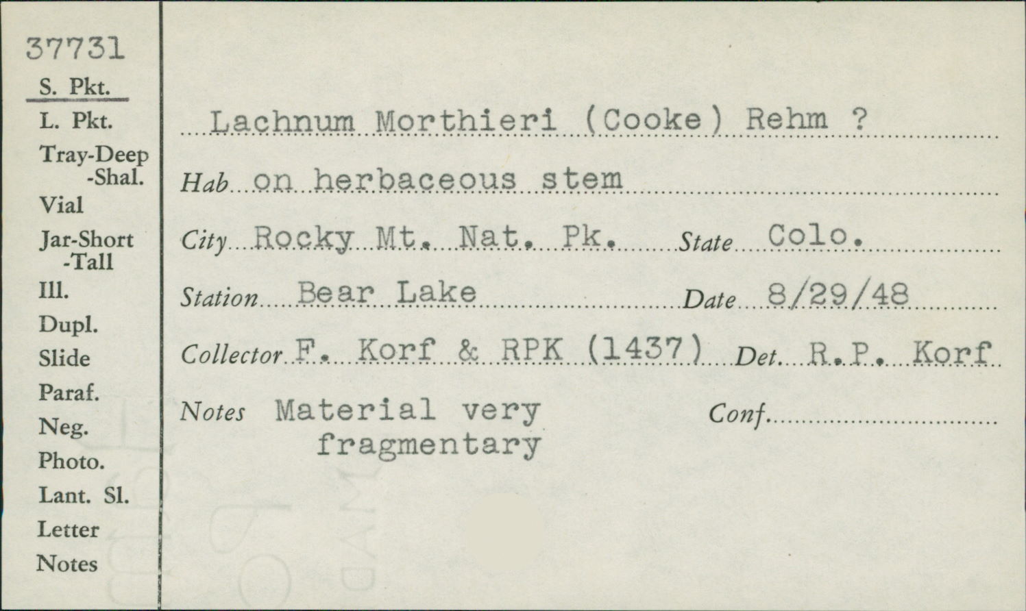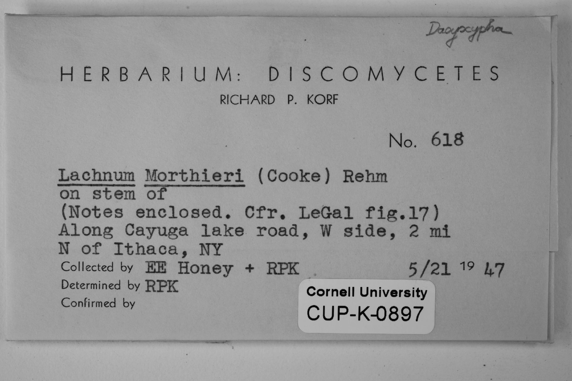 Sporen: Schläuche keulig, 25—30 µm lang, 3 µm breit, achtsporig. Sporen spindelförmig, 5—8 µm lang, 1—1,5 µm breit. Paraphysen lanzettförmig, spitz, weit vorragend. — Auf einem dürren Stengel von Senecio Fuchsii in der Schweiz.