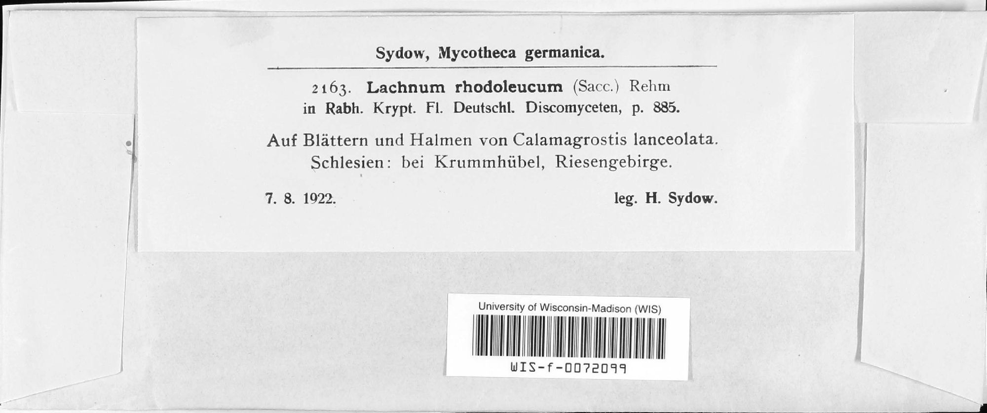 Lachnum rhodoleucum (Sacc.) Rehm