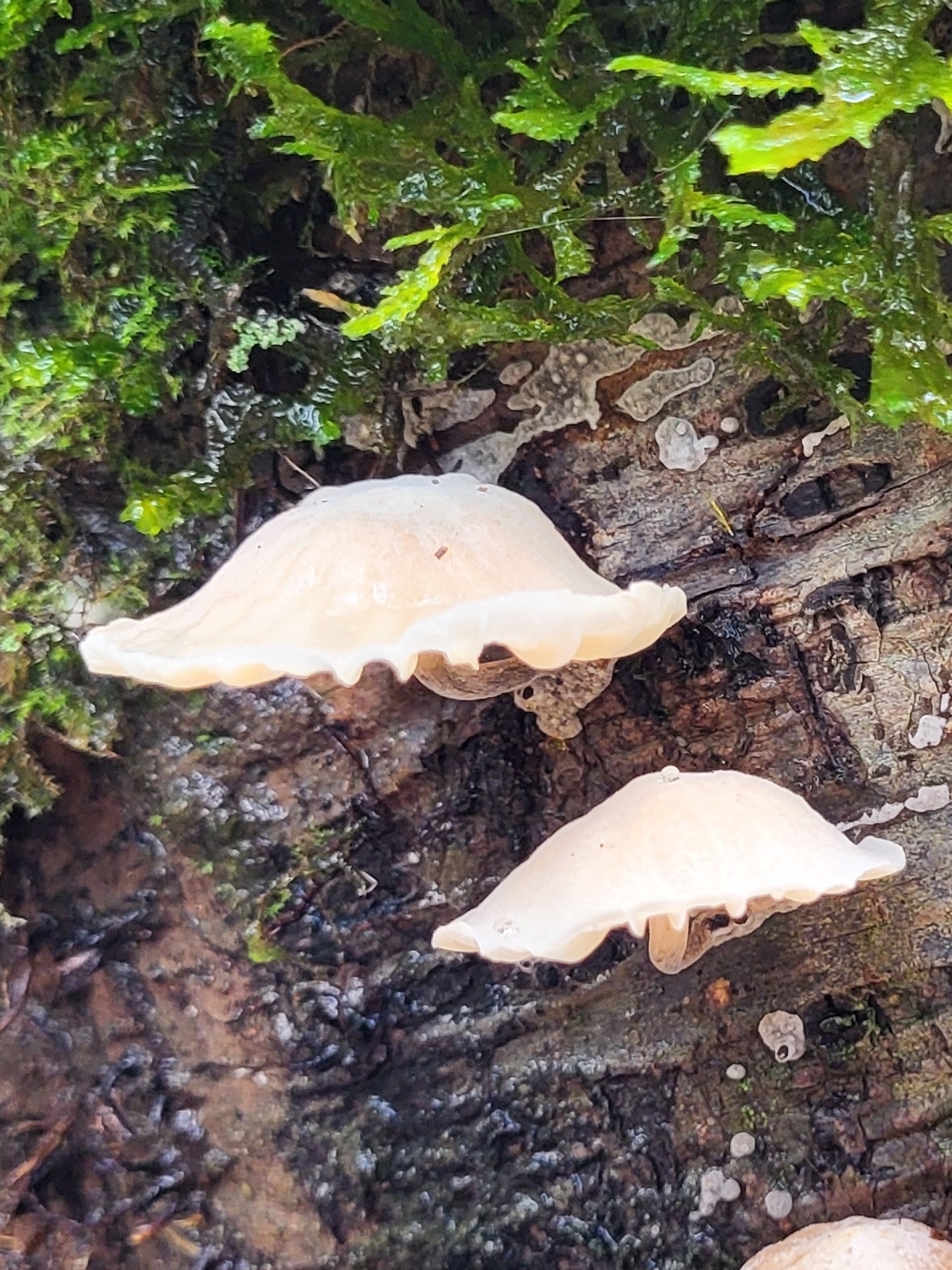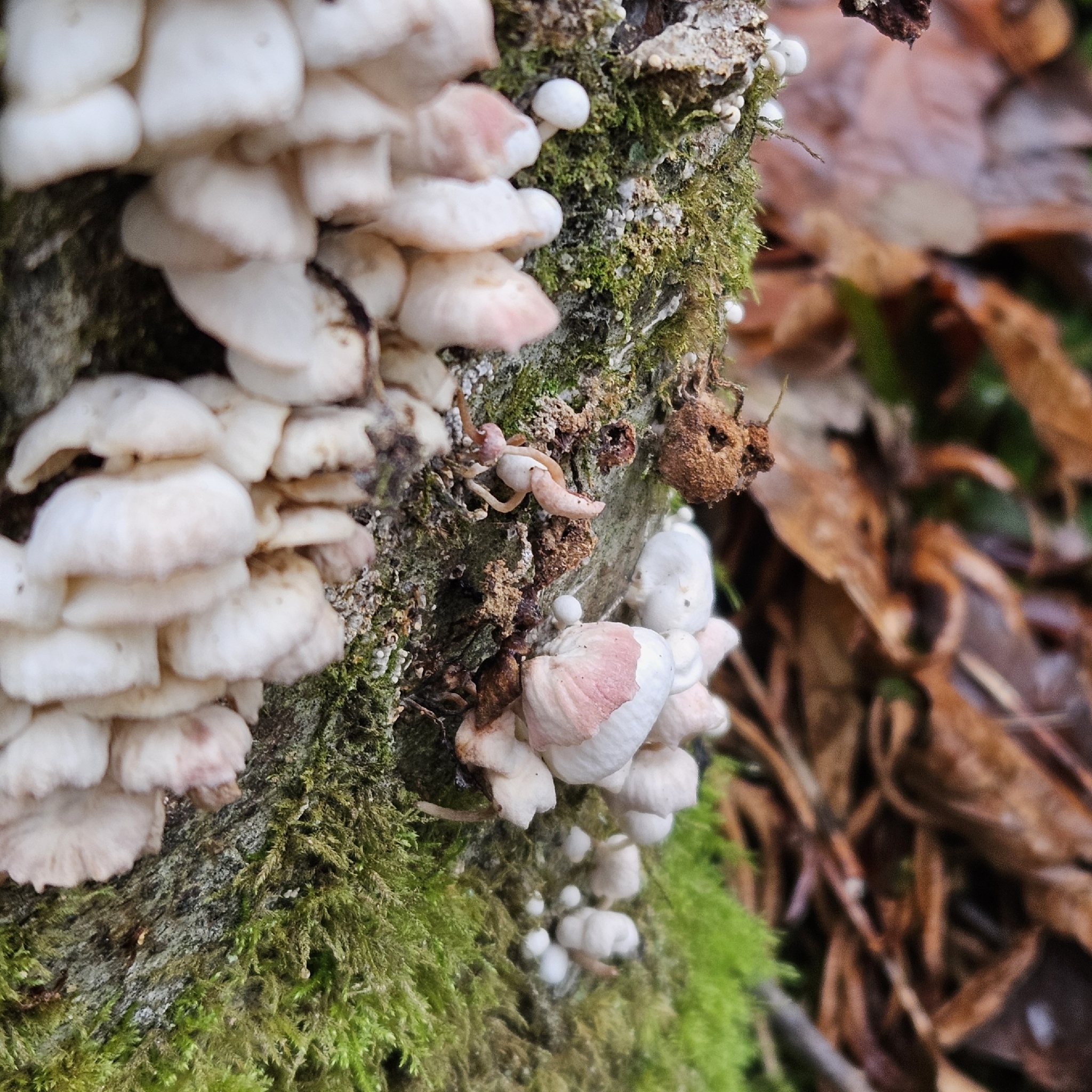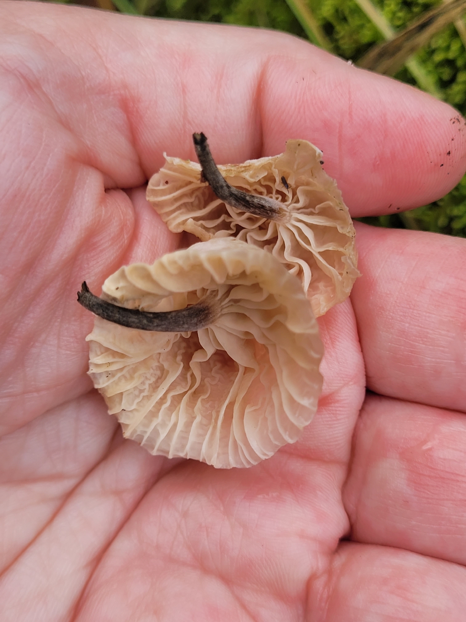 Lamellen: Lamellen angeheftet, bauchig, entfernt stehend. Der ganze Pilz ist weiss.