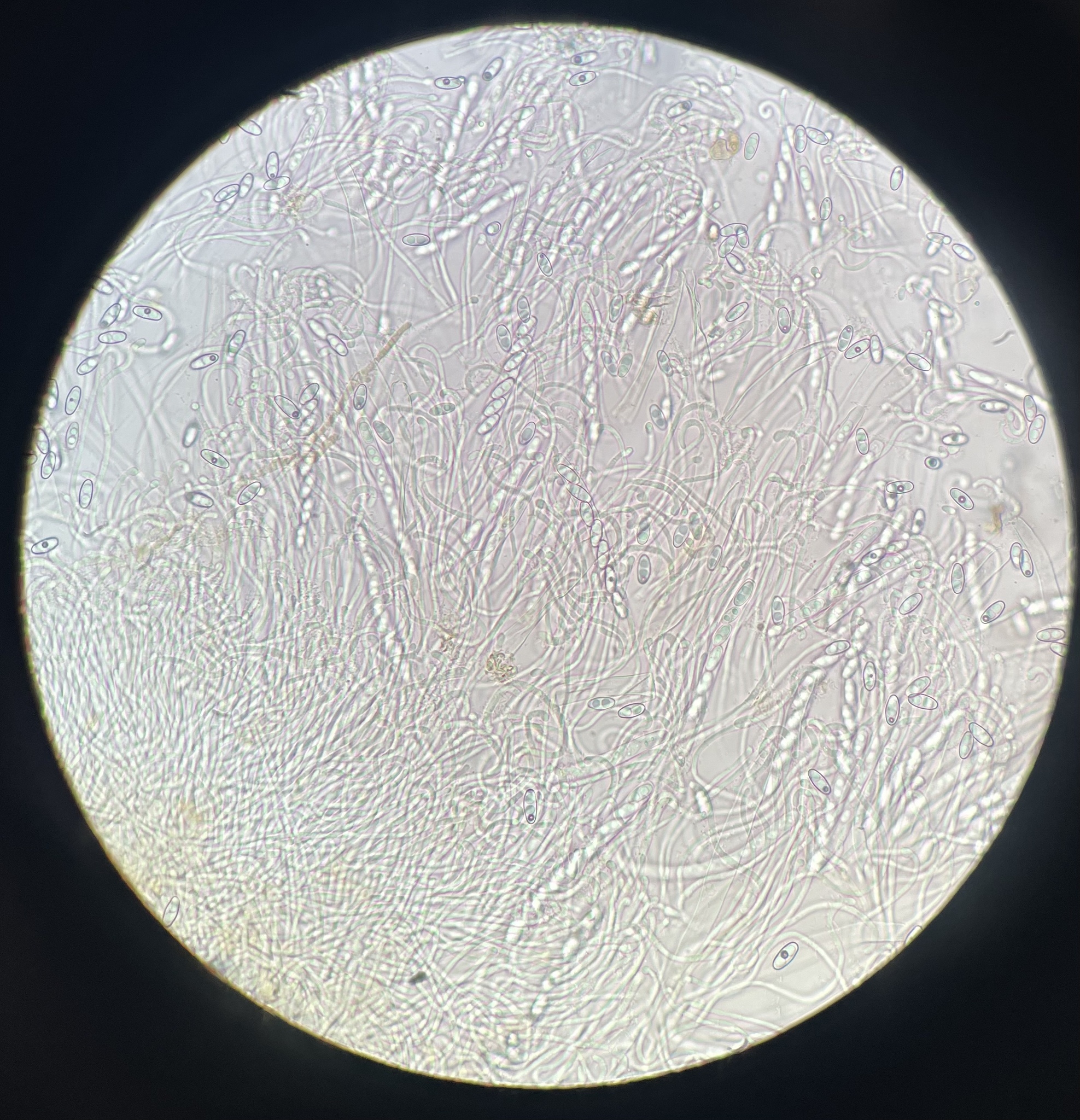 Sporen: Schläuche zylindrisch, laug, oben abgerundet, Ib µm breit, achtsporig. Sporen elliptisch, stumpf, glatt, einzellig ohne Öltropfen, farblos, 20—24 µm lang, 10—12 µm breit, einreihig liegend. Paraphysen fädig, nach oben allmählich bis 8 µm breit, farblos.