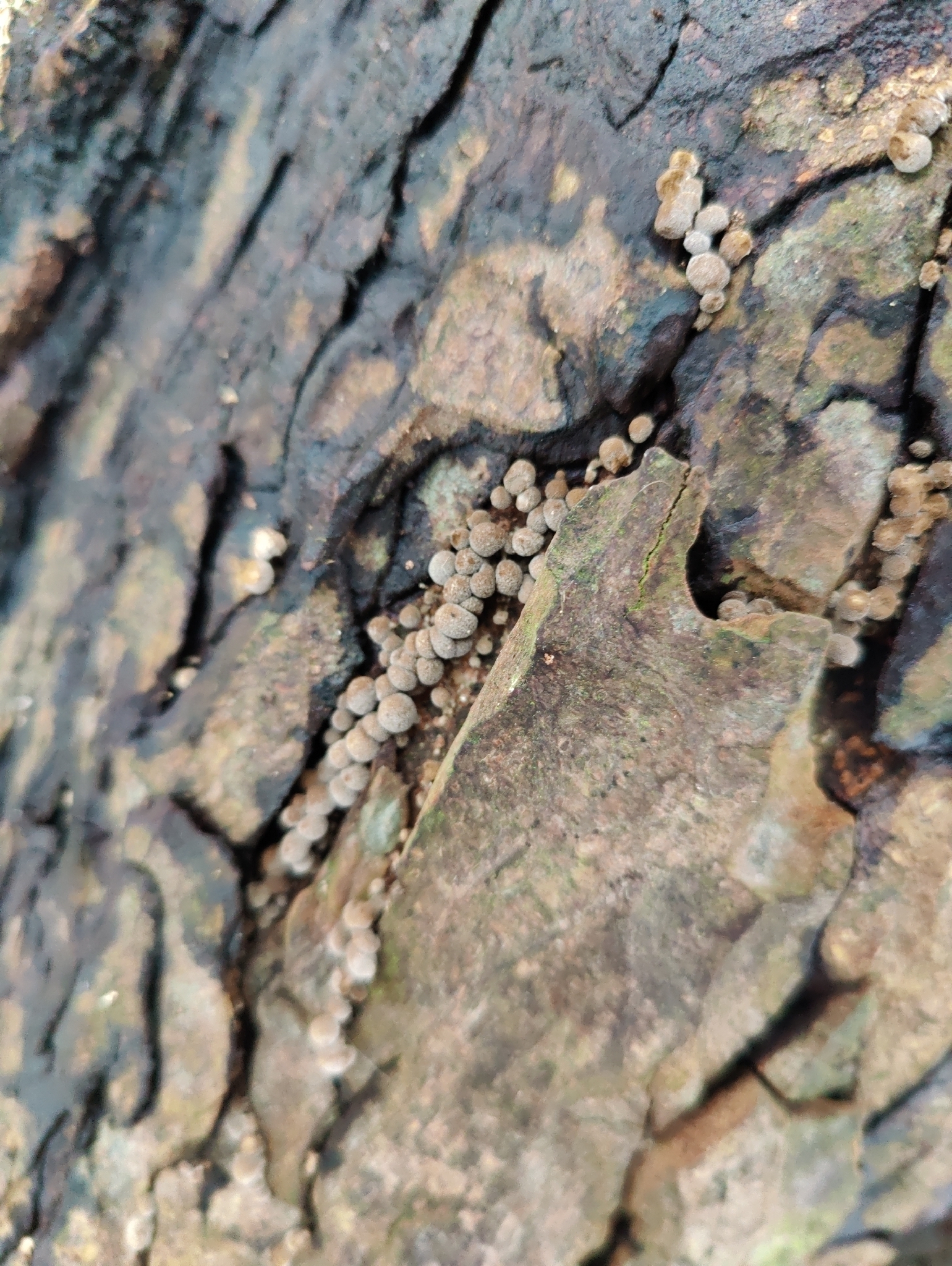 Vorkommen: auf Rinden von Buche und Hainbuche, auf Buchenholz, selten, zerstreut