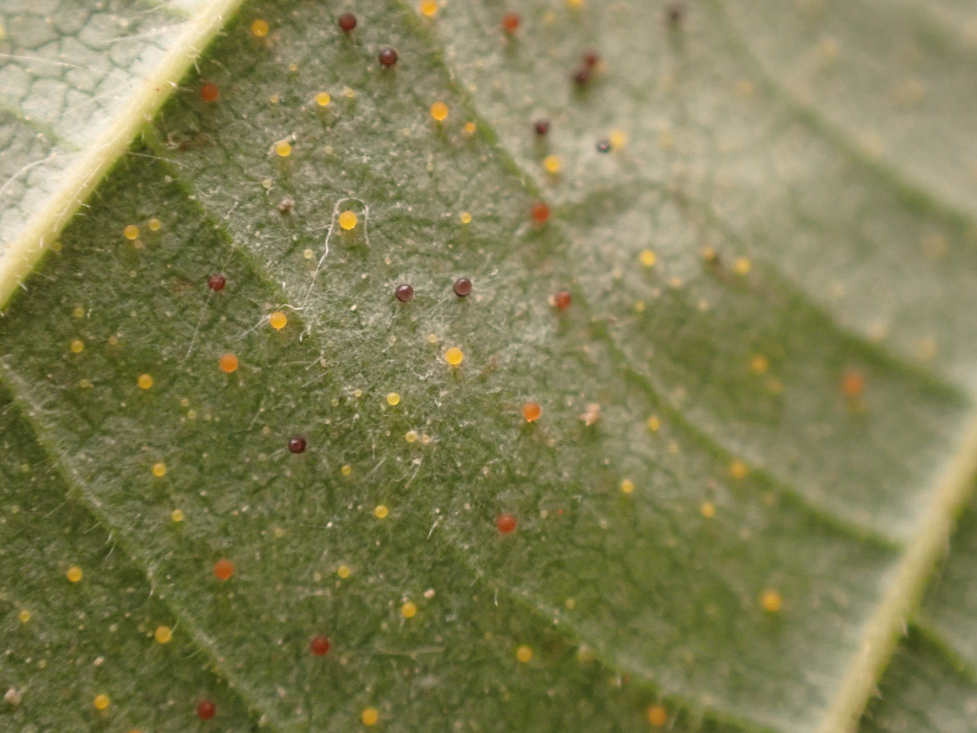 Vorkommen: Auf Blättern verschiedener Laubhölzer. August bis November.