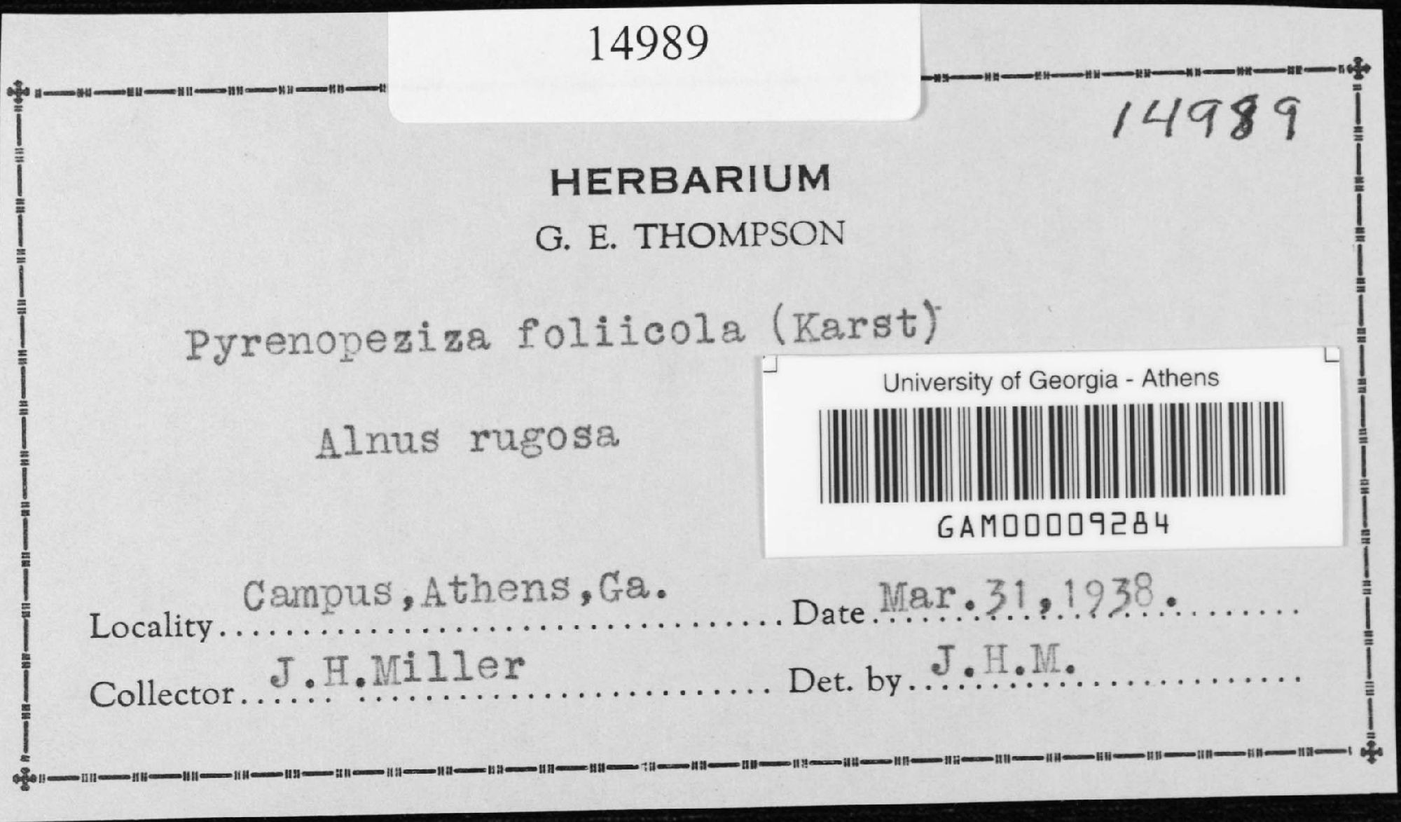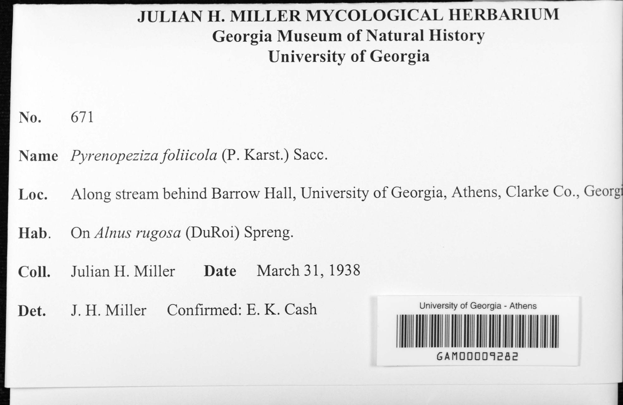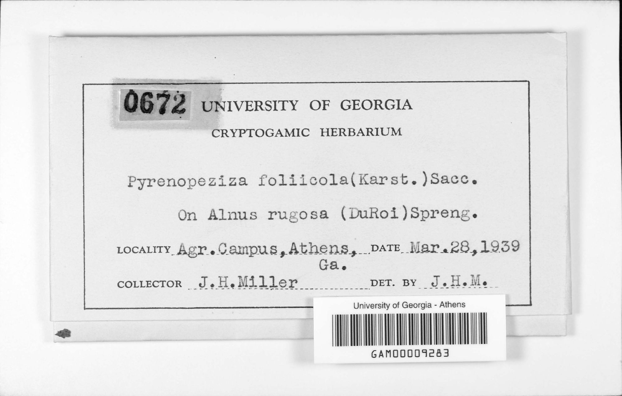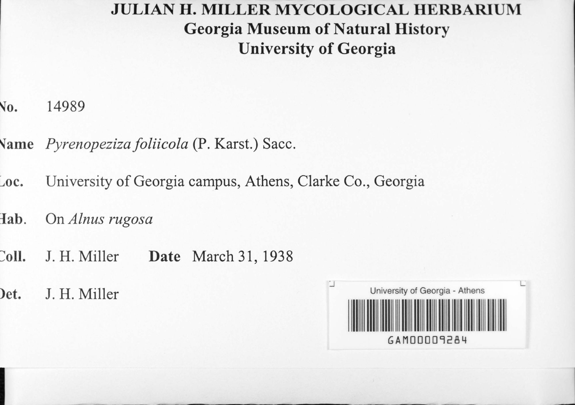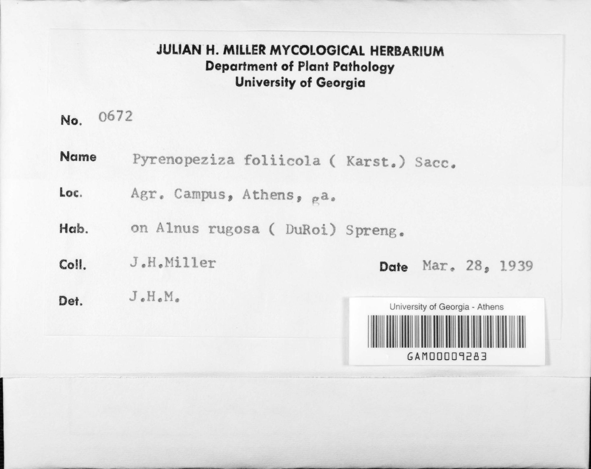University of Georgia, Julian H. Miller Mycological Herbarium (GAM-)