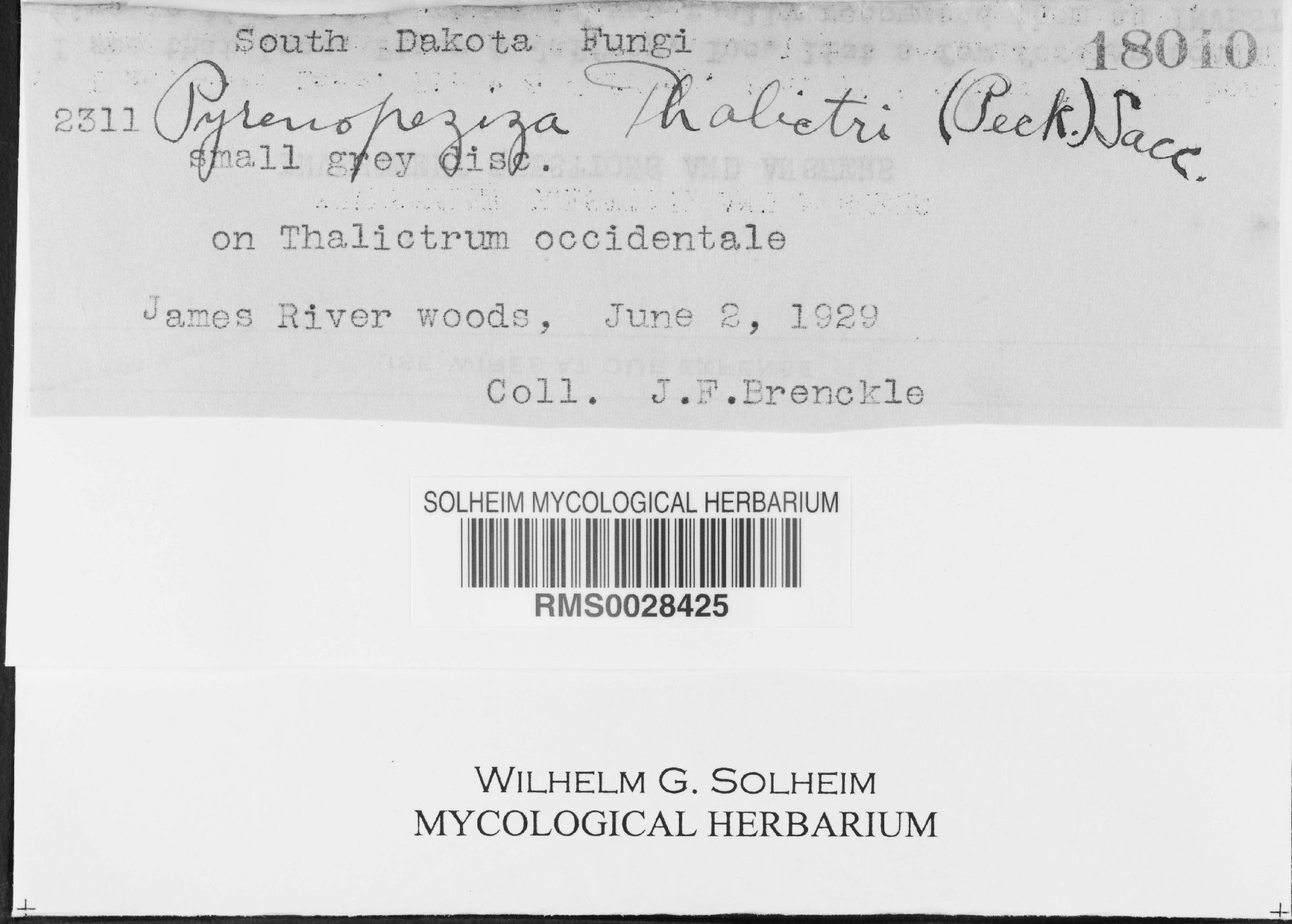 Pyrenopeziza thalictri (Peck) Sacc. 1889