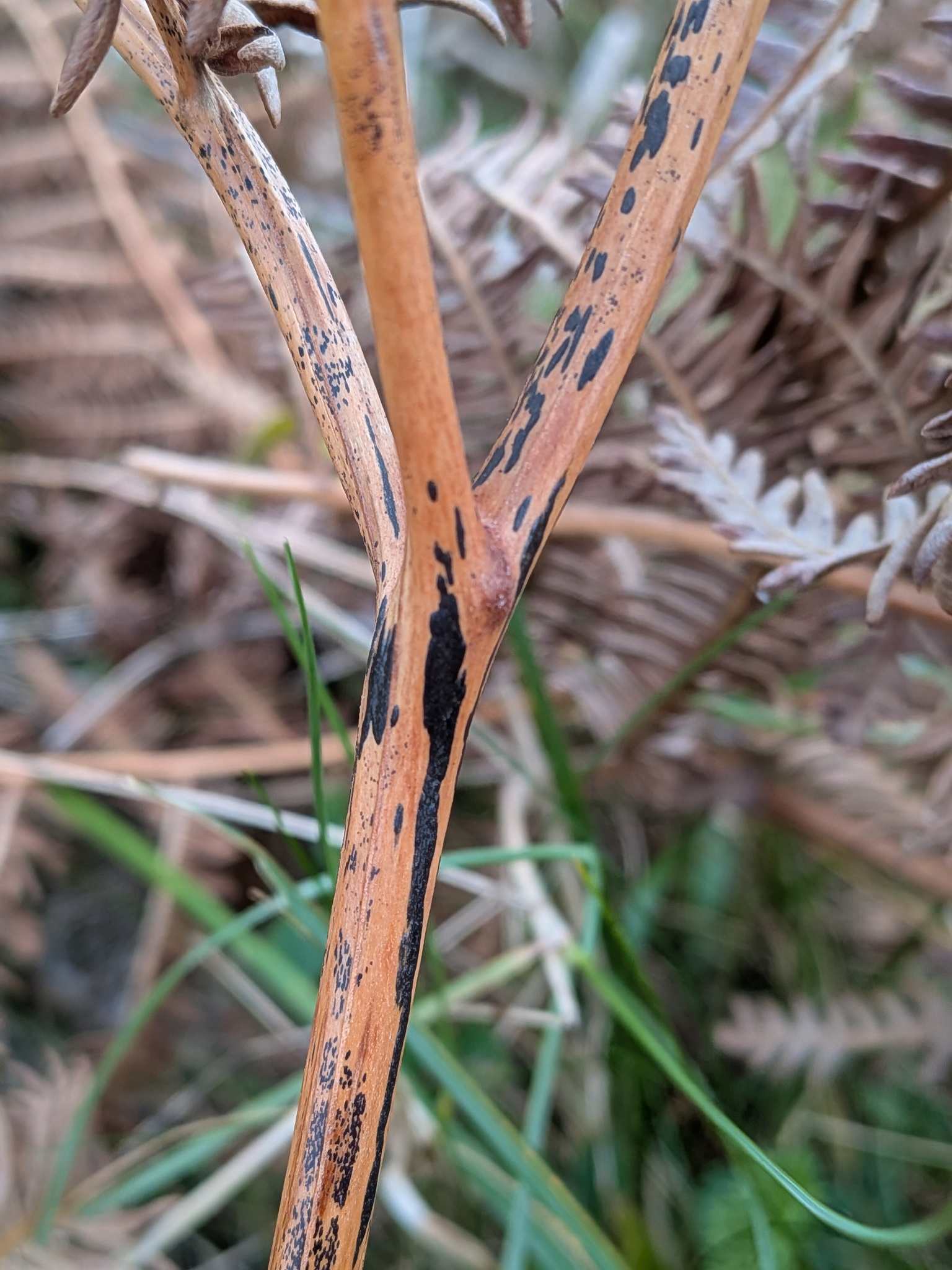 Home > Ascomycota > Dothideomycetes > Pleosporales > Nicht zugeordnet > Rhopographus > Adlerfarn-Fleckenpilz