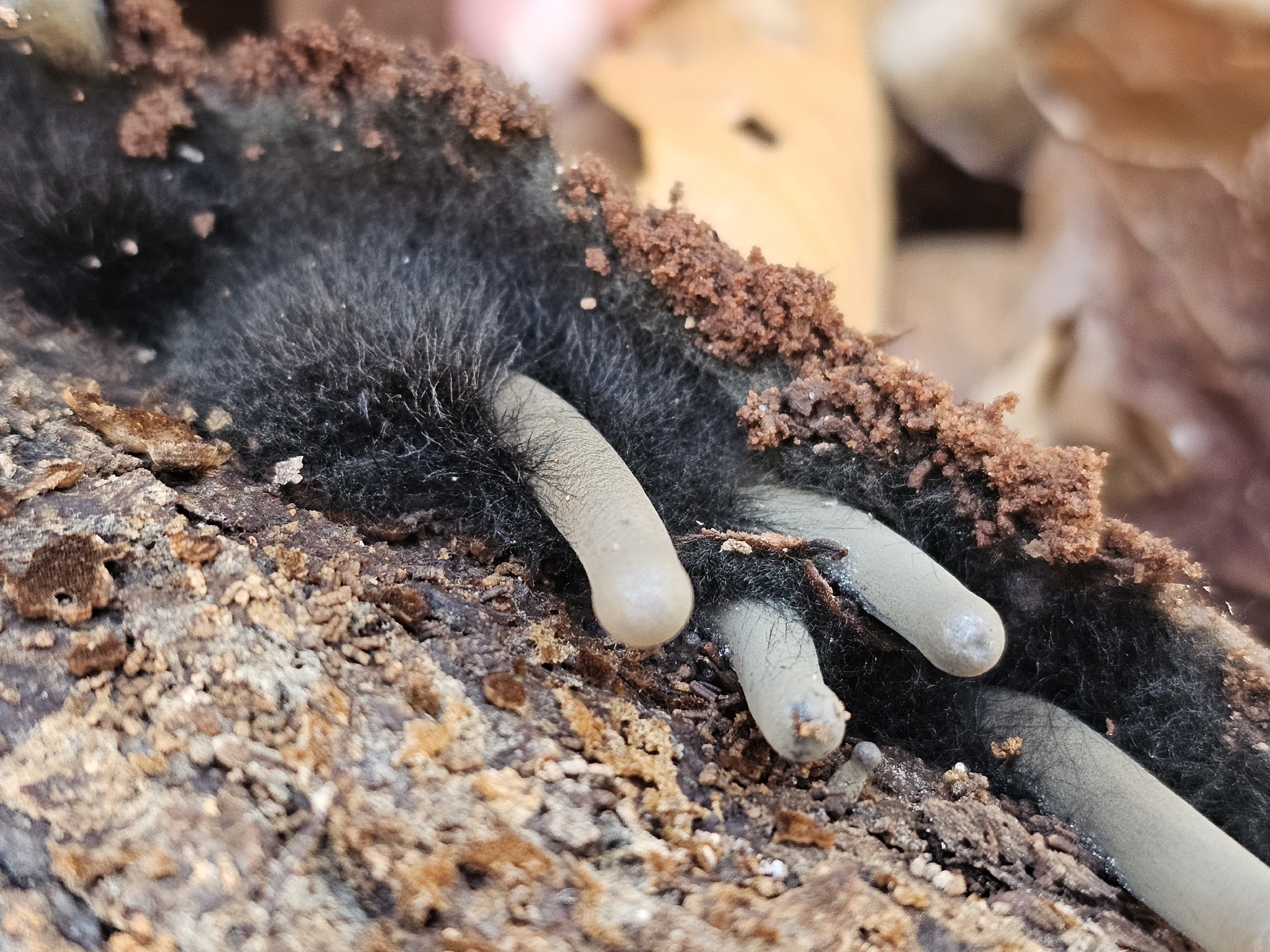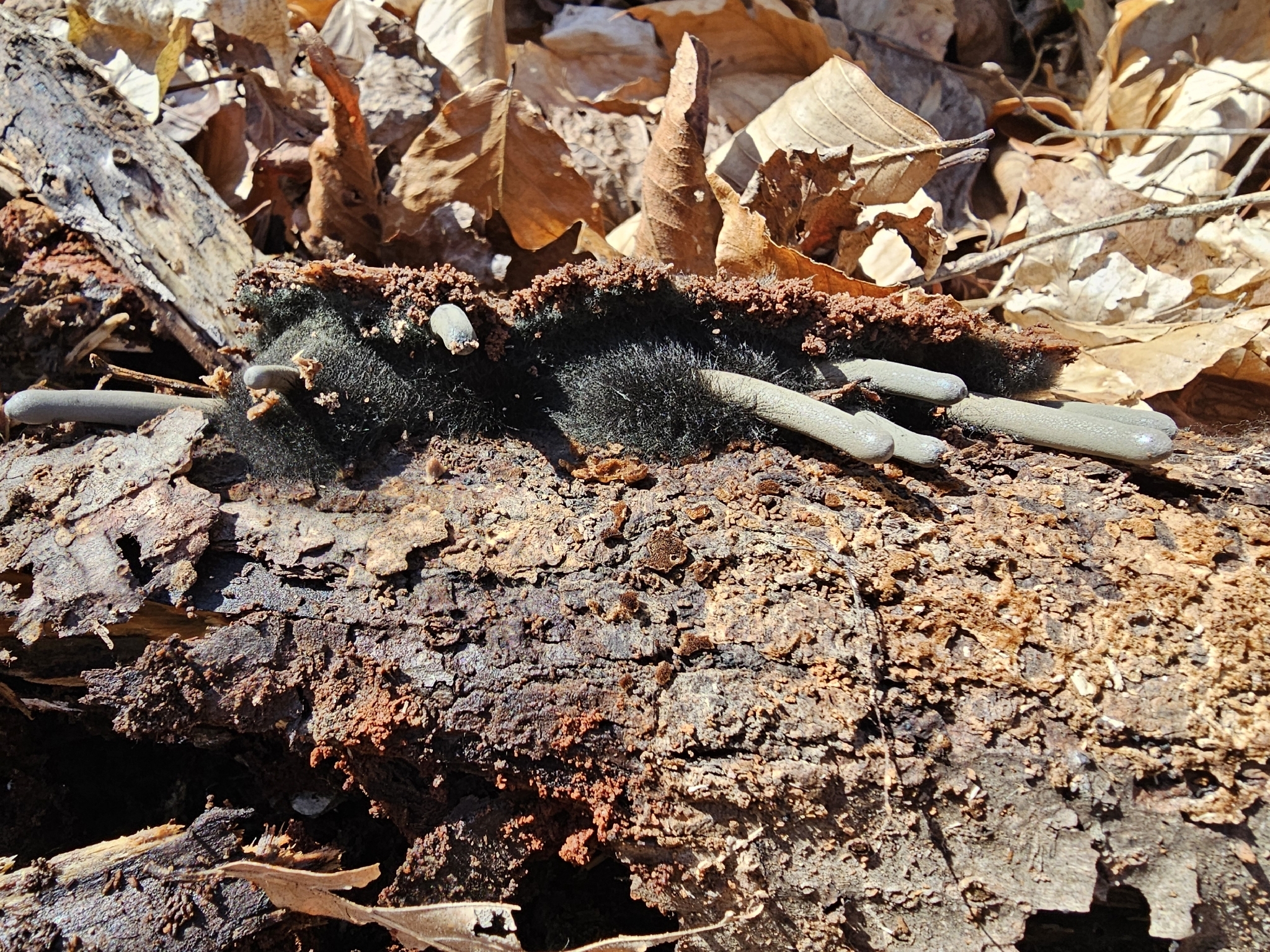 Fruchtkörper: Apothecien gesellig, zylindrisch, dann kelch- oder glockenförmig, zuerst geschlossen, rundlich sich öffnend und die krug-, später mehr schüsseiförmige, anfangs dick, später unregelmässig wellig und oft tief eingerissen oder umgeschlagen berandete, fast schwarze Fruchtscheibe entblössend, aussen grau oder umbrabraun, etwas mehlig bestäubt, in einen 1—5 cm langen, 4—10 mm breiten, meist zusammengedrückten und etwas gefurchten, am Grund oft schwarz-faserigen Stiel verschmälert, 2—8 cm breit, fleischig- lederartig.