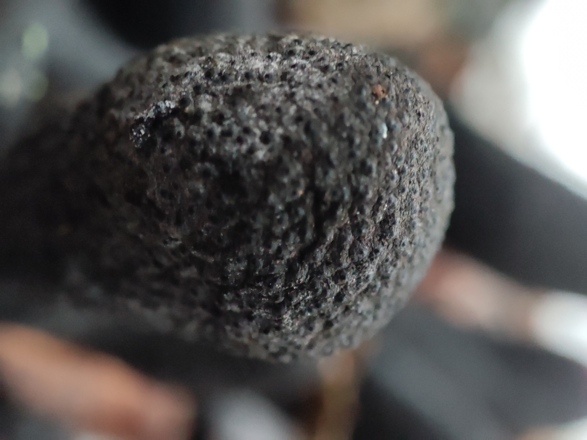 Fruchtkörper 3–8 cm hoch, 1–3 cm breit, unregelmäßig keulenförmig, unten in einen kurzen, zylindrischen Stiel übergehend; schwarz; fein gerunzelt oder rau.Fleisch weiß; zäh; im Querschnitt erkennbar ist das charakteristische Muster der sporenproduzierenden Hohlräume, der Perithecien, direkt unter der Oberflächenkruste.Sporen 20–32x5–9 µm, spindelförmig (fusiform); schwärzlich.Asci 200x10 µm.