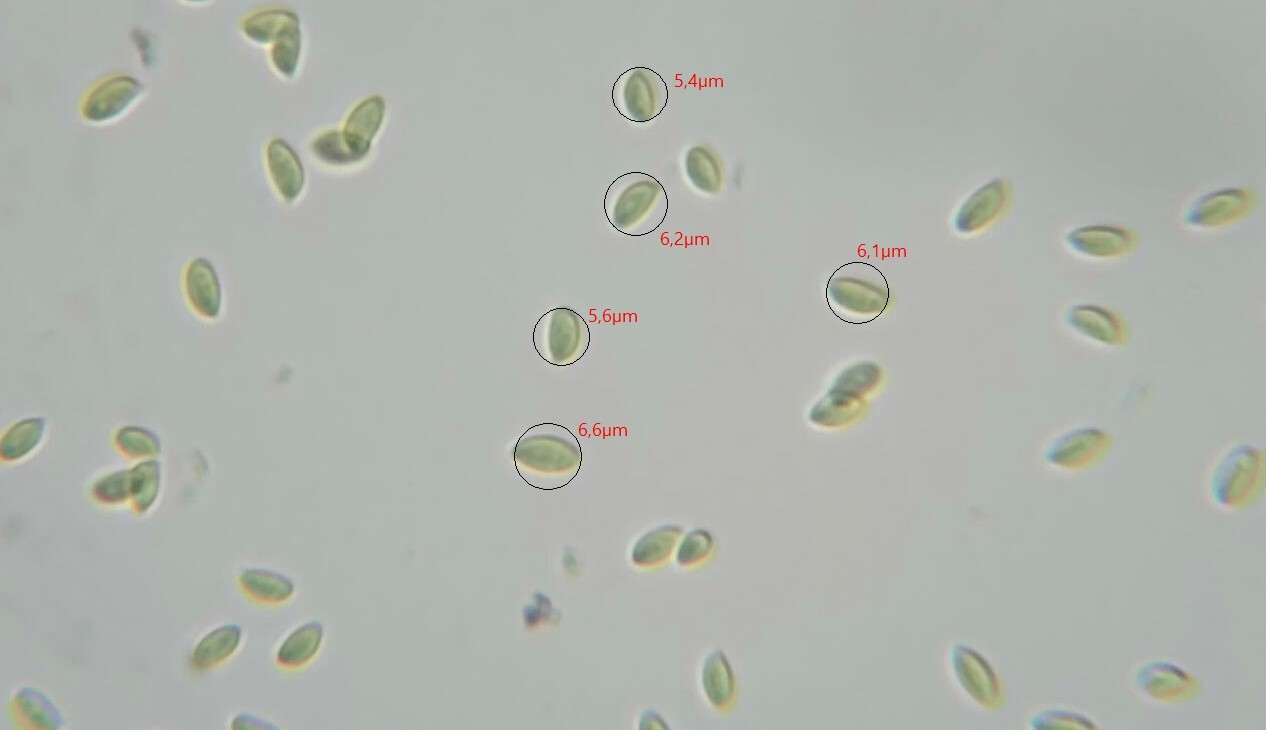 Sporenmaße Länge x Breite: 5.00 - 7.00 x Breite: 3.50 - 5.00 µmHut