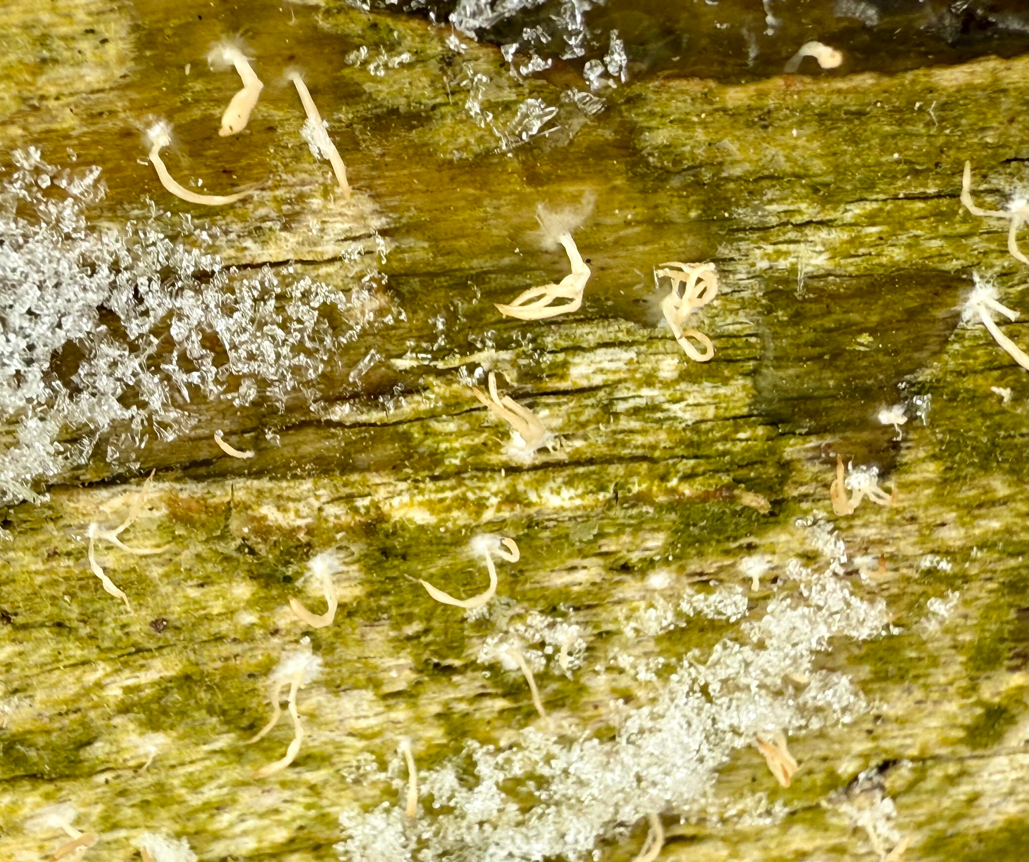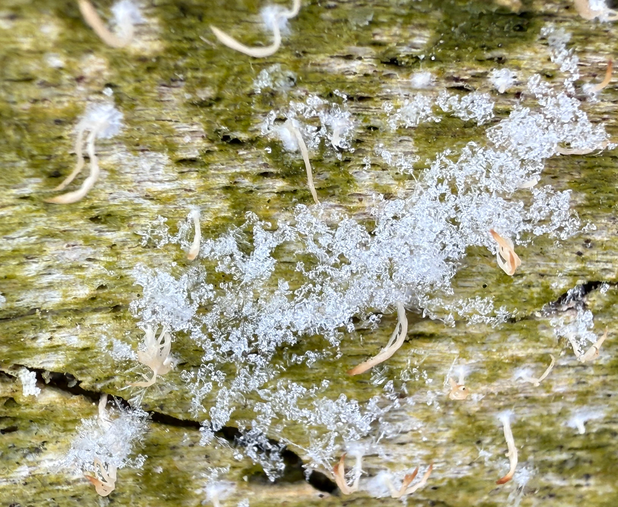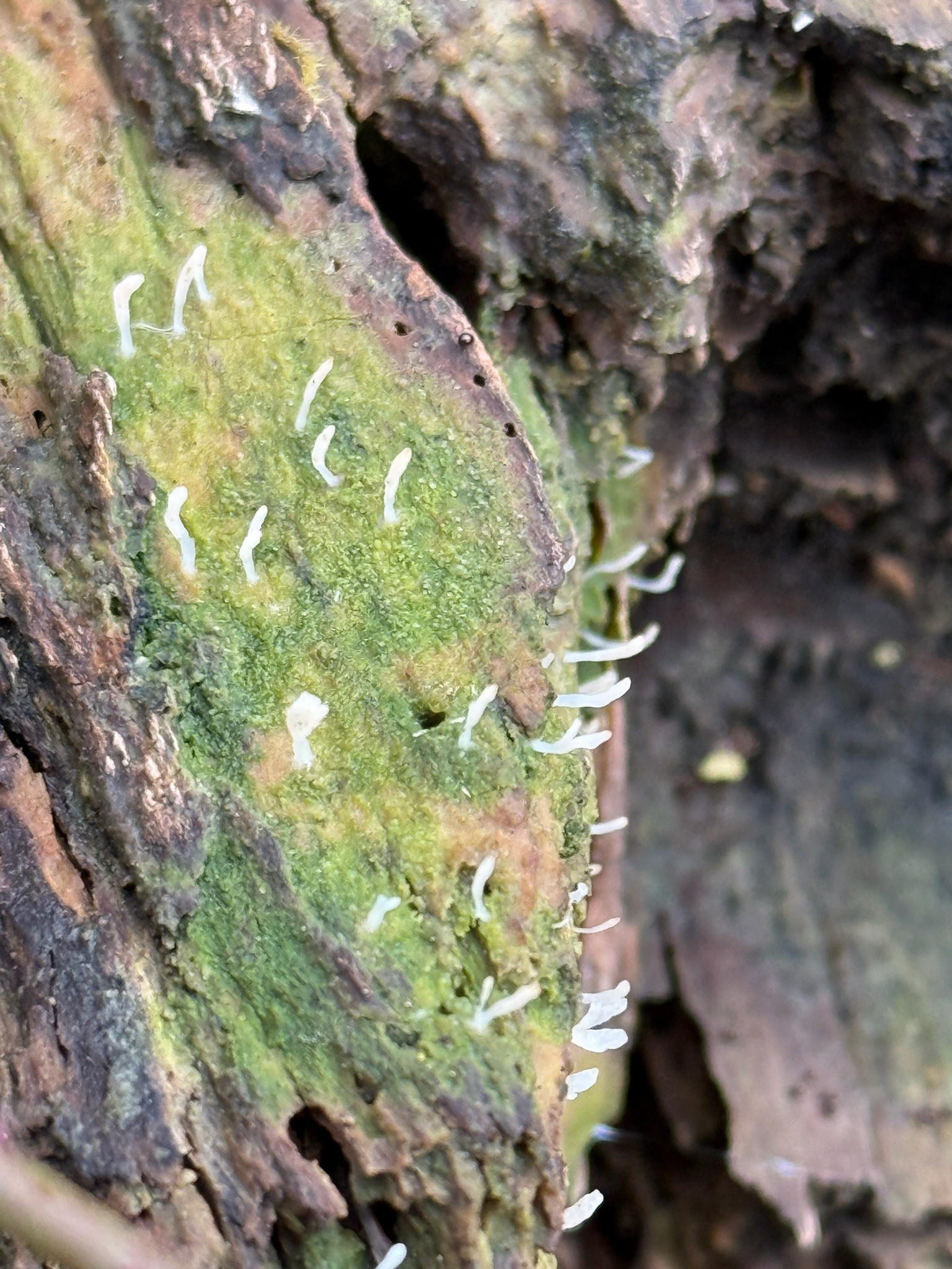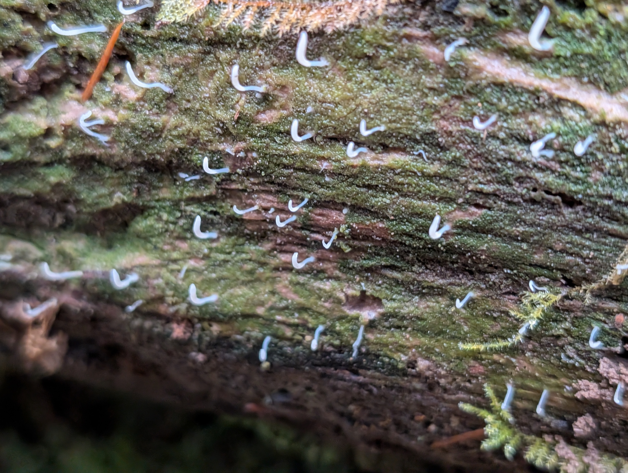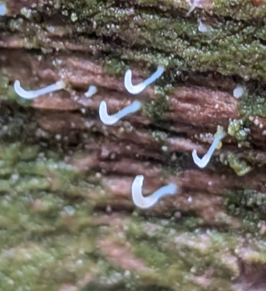 Fruchtkörper: Fruchtkörper gesellig, klein, einfach oder nur sparsam eingeschnitten, glatt und nackt, weiss oder gelblich, selten leicht rosa