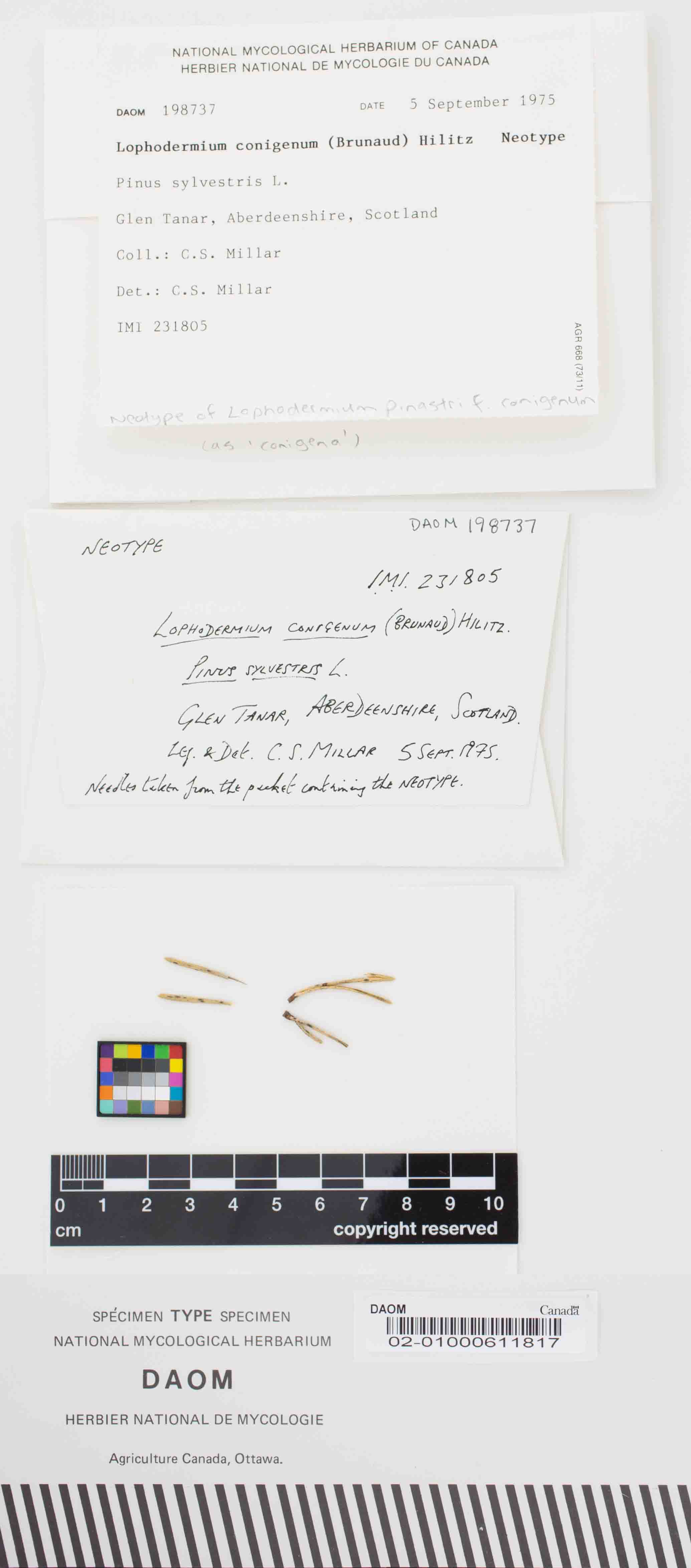 Lophodermium pinastri forma conigenum Brunaud 1888