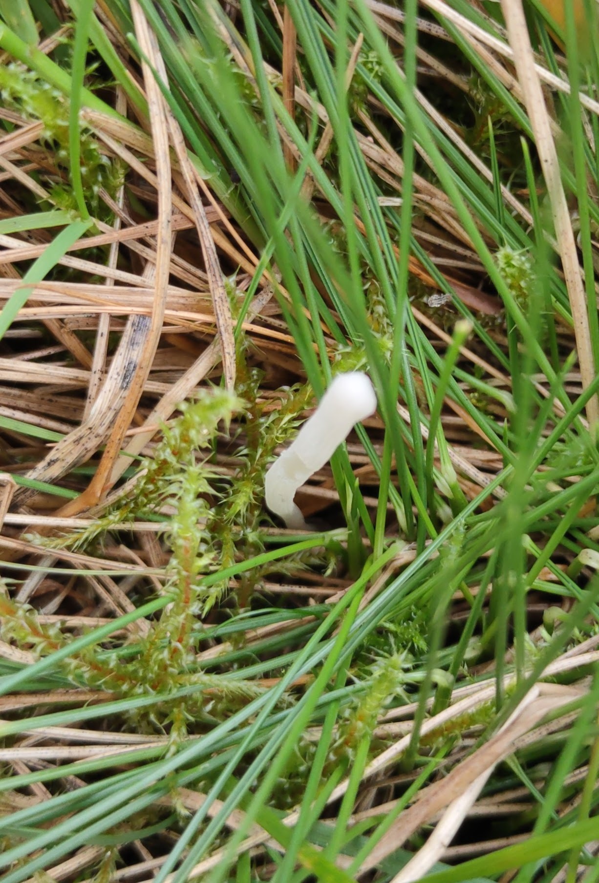 Fruchtkörper: Fruchtkörper steif aufrecht, einzeln. Stiel zylindrisch, weiss durchscheinend.
