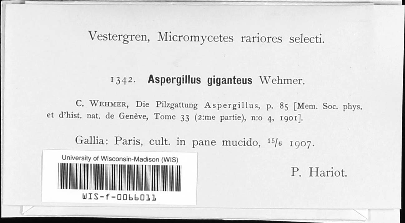 Sterigmatocystis gigantea Mattlet 1926