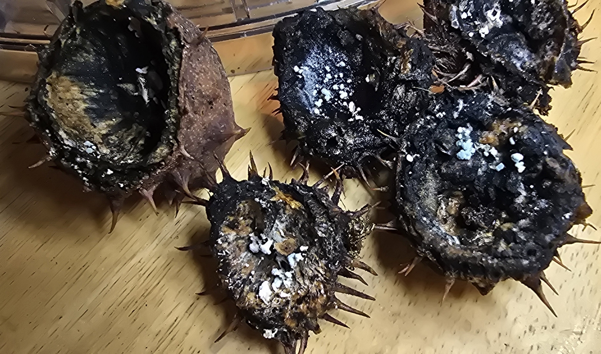 Sporen: Sporen geballt, ellipsoidisch, 5—6 µm lang, 4 bis 4,5 µm breit; Membran mit drei bis vier Querrippen, welche am Rande als spitze Vorsprünge erscheinen und den Sporen ein sternförmiges Aussehen geben, bei der Keimung zweiklappig aufspringend, hellgelblich. Die Ascusfrüchte sind selten und entwickeln sich nur unter bestimmten Bedingungen, besonders bei Luftabschluss auf günstigem Nährboden.