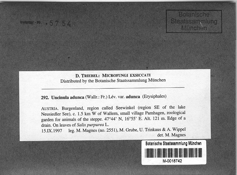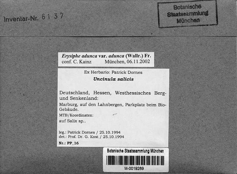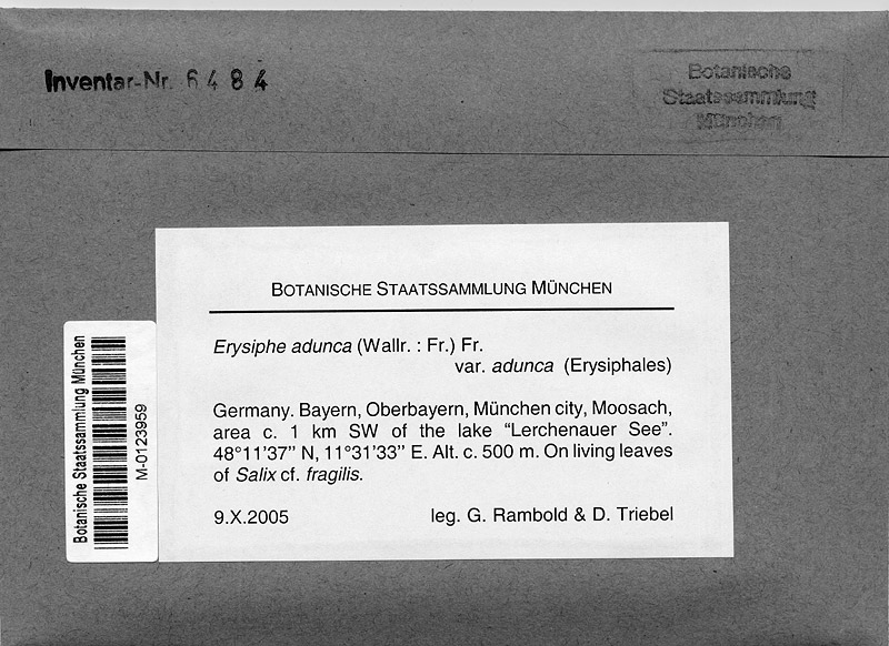 Uncinula adunca var. adunca (Wallr.) Lév. 1851.